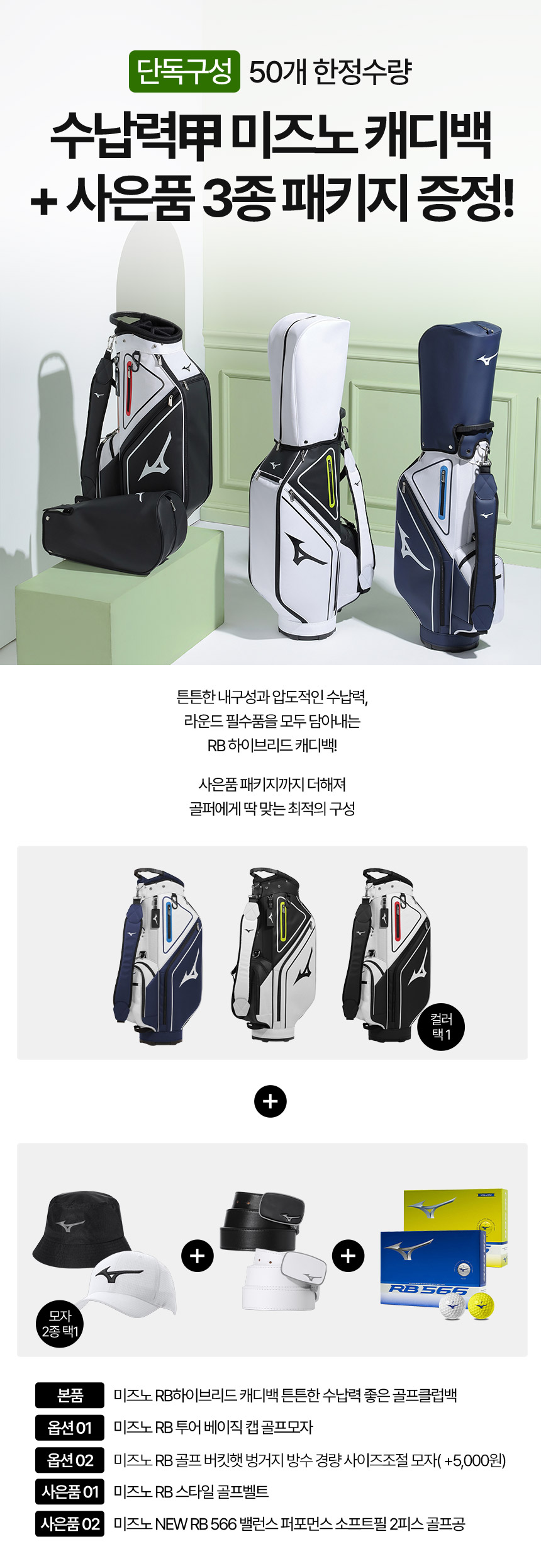 미즈노 RB하이브리드 캐디백 튼튼한 수납력 좋은 골프클럽백 5LXC220008 + 용품 3종 세트