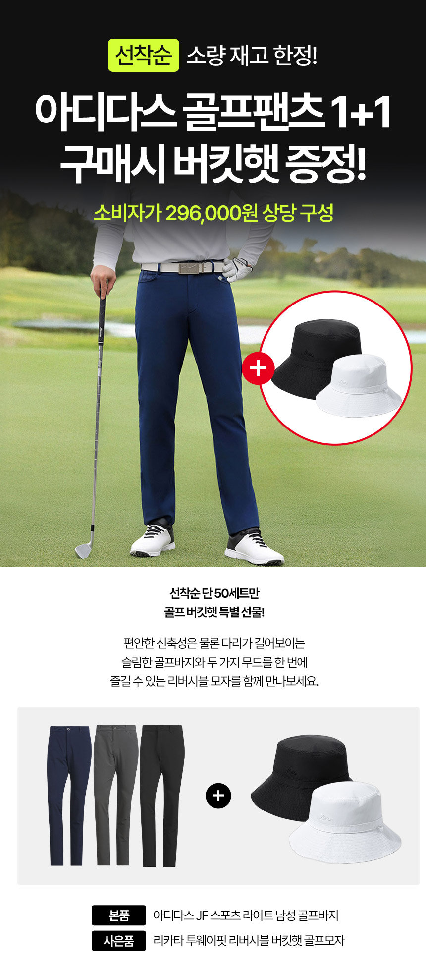 [1+1] 아디다스 JF 스포츠 라이트 남성 골프웨어 골프바지 JE8293 JG3563 JL6505 + 리카타 버킷햇 증정