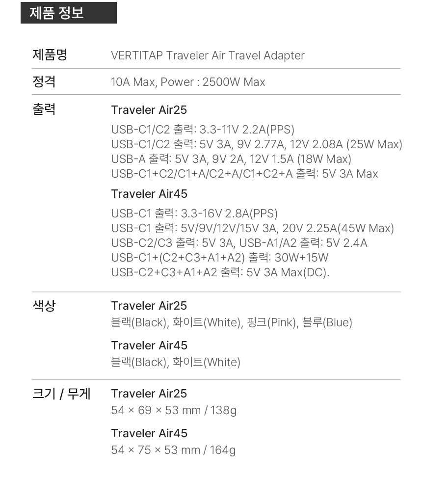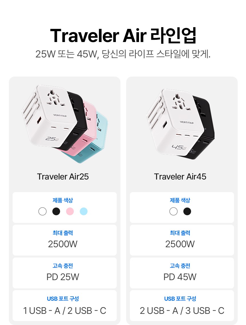 버티탭 트레블러 에어 25W 멀티 어댑터 해외 전세계 콘센트 여행용 멀티탭 usb 플러그