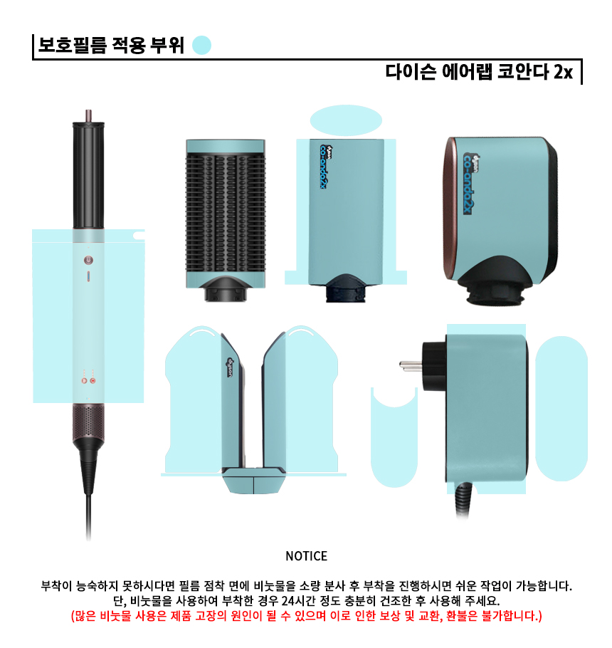 모델명 다이슨 에어랩 코안다 2x 외부 보호필름 세트
