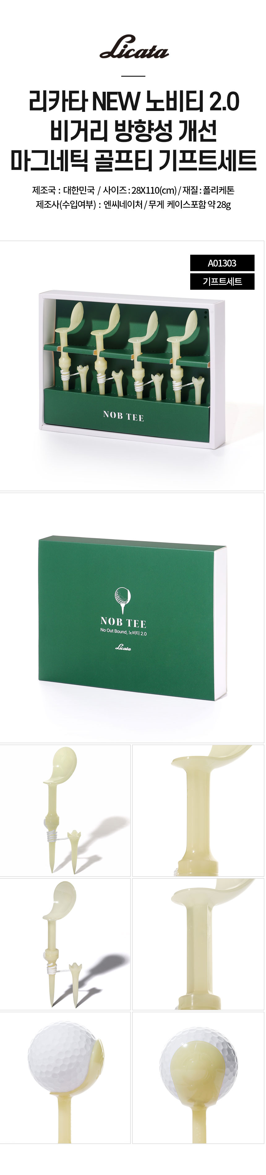 [2개 1세트] 리카타 NEW 노비티 2.0 비거리 방향성 개선 마그네틱 골프티꽂이 롱티 기프트세트+쇼핑백 2개