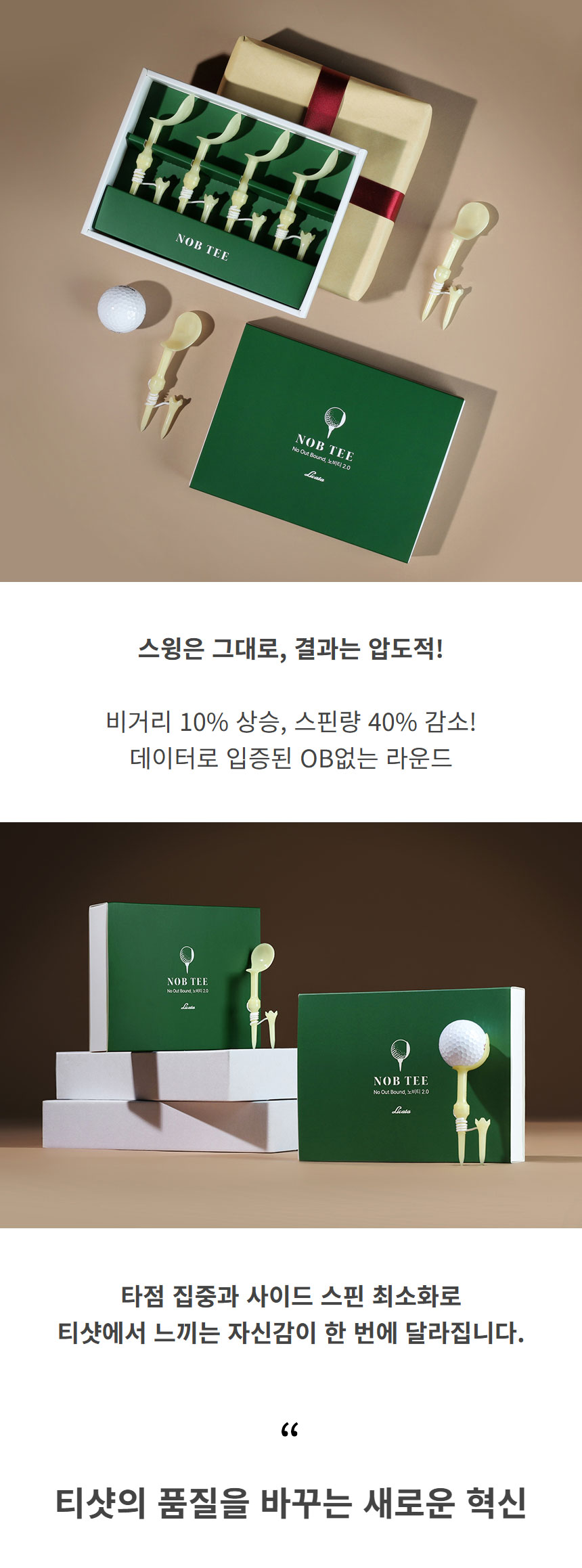 [2개 1세트] 리카타 NEW 노비티 2.0 비거리 방향성 개선 마그네틱 골프티 기프트세트+쇼핑백 2개
