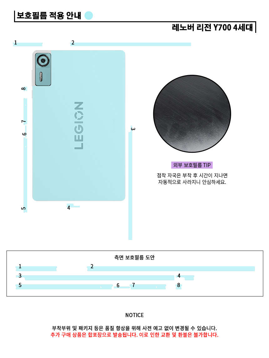 레노버 리전 Y700 4세대 후면 측면 외부보호필름