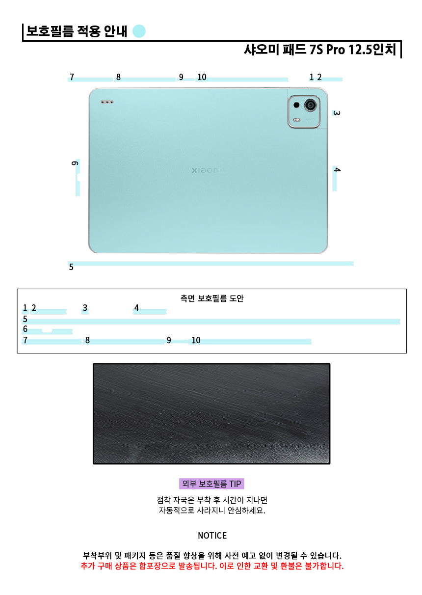 샤오미 패드 7S Pro 12.5 후면 측면 외부보호필름