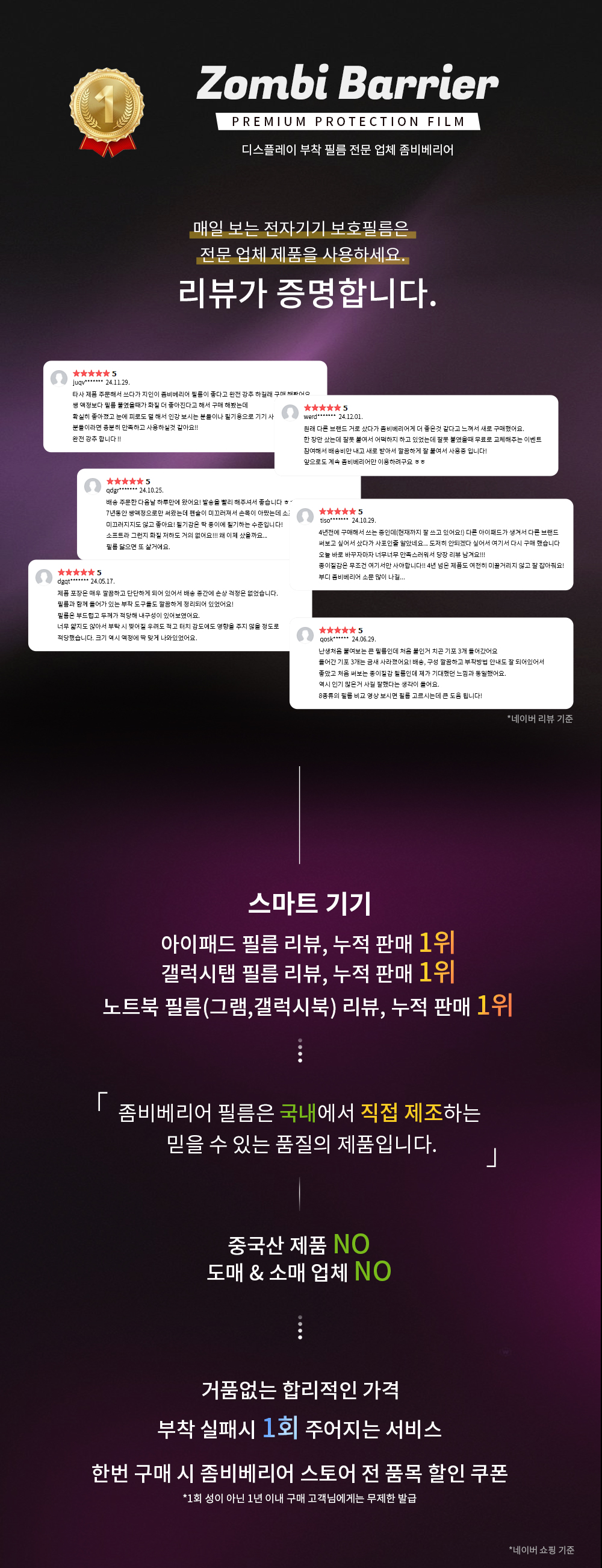 • ① 제품을 설치 또는 사용하거나 상품의 가치가 훼손된 경우(정품스티커 절개 포함)