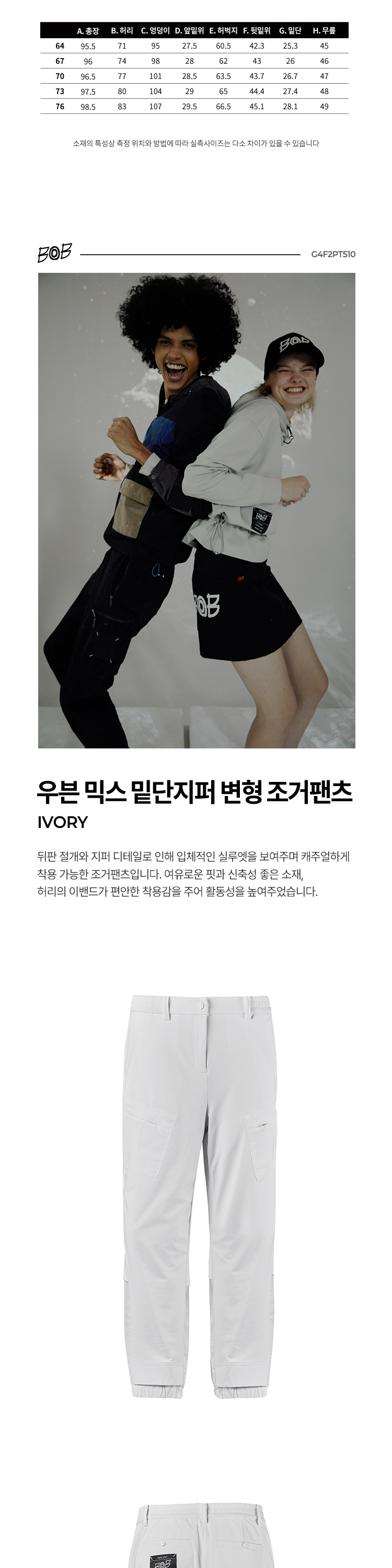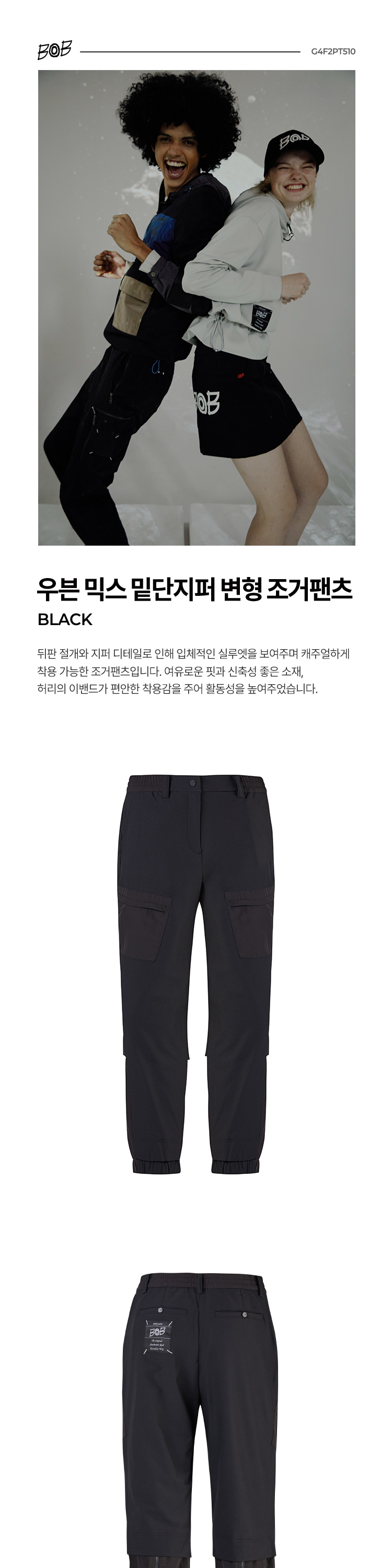 BOB 비오비 우븐 믹스 밑단지퍼 변형 여성 조거팬츠 G4F2PT510