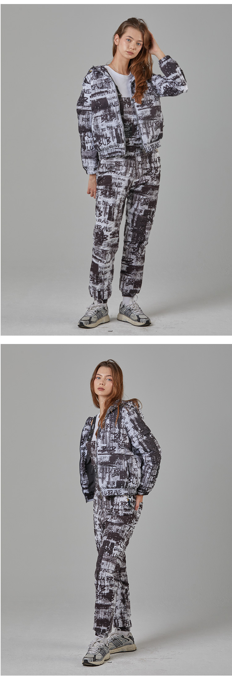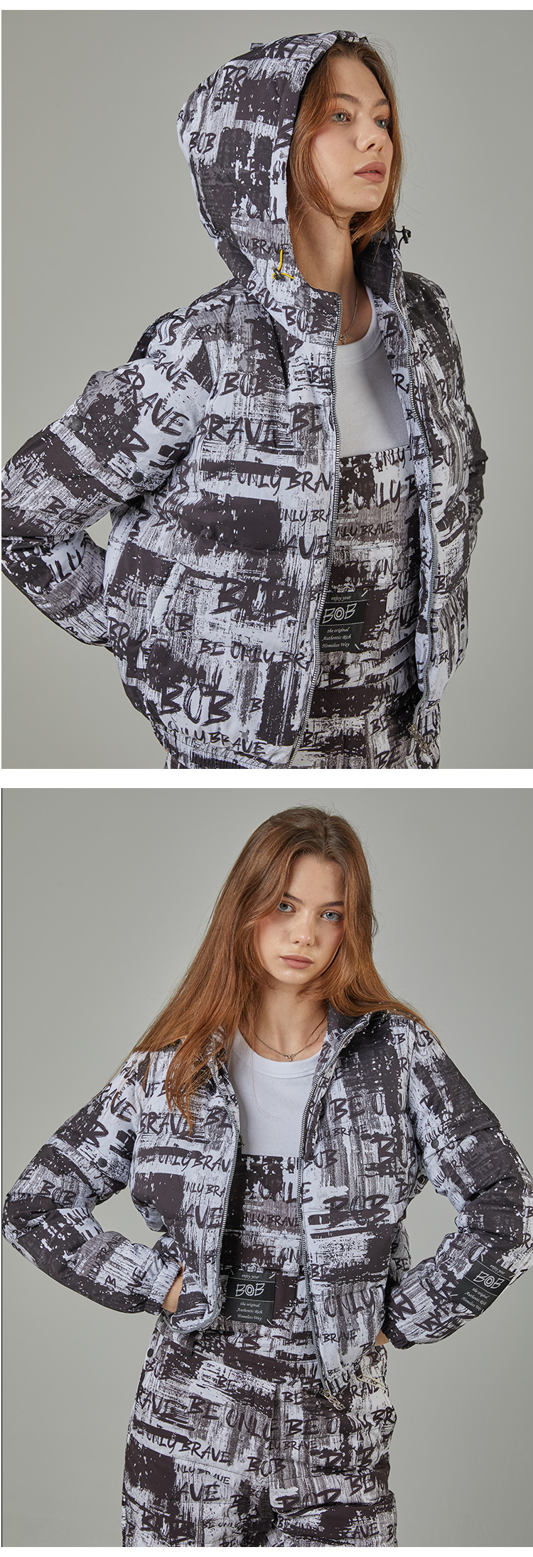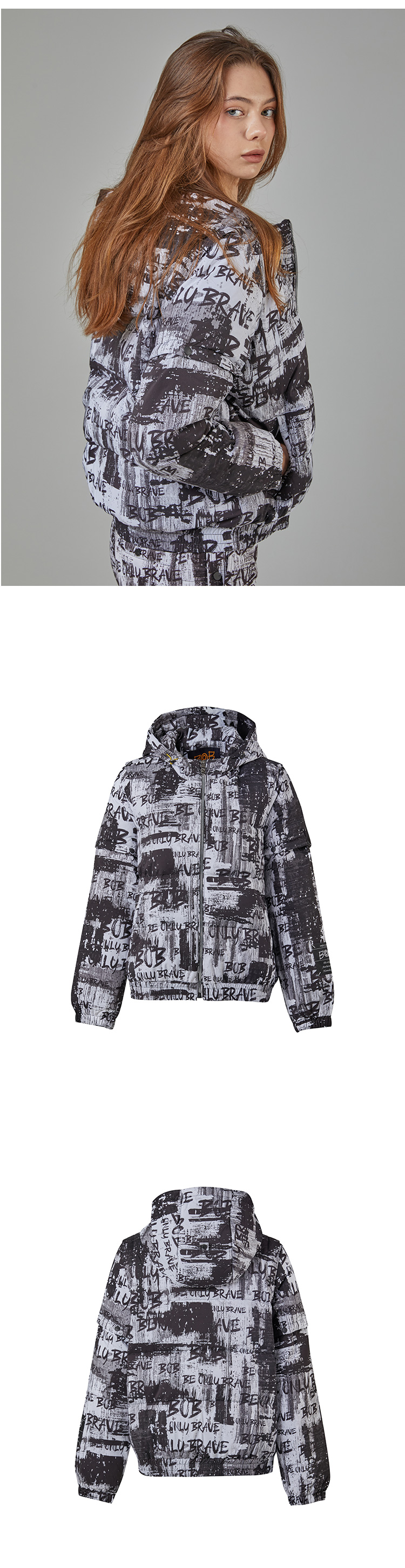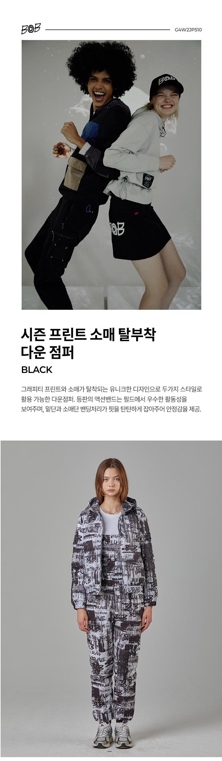 BOB 비오비 시즌 프린트 소매 탈부착 여성 다운 점퍼 G4W2JP510