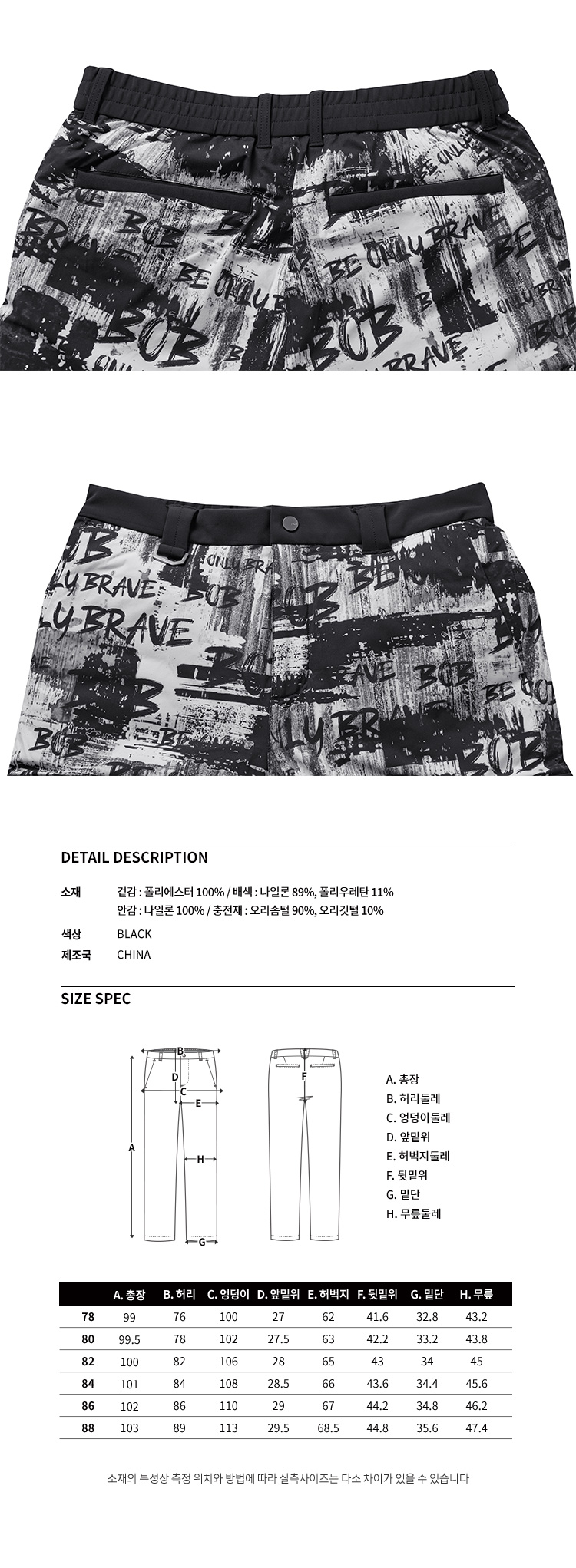 BOB 비오비 남성 전판 프린트 패딩 팬츠 G4W1PT010