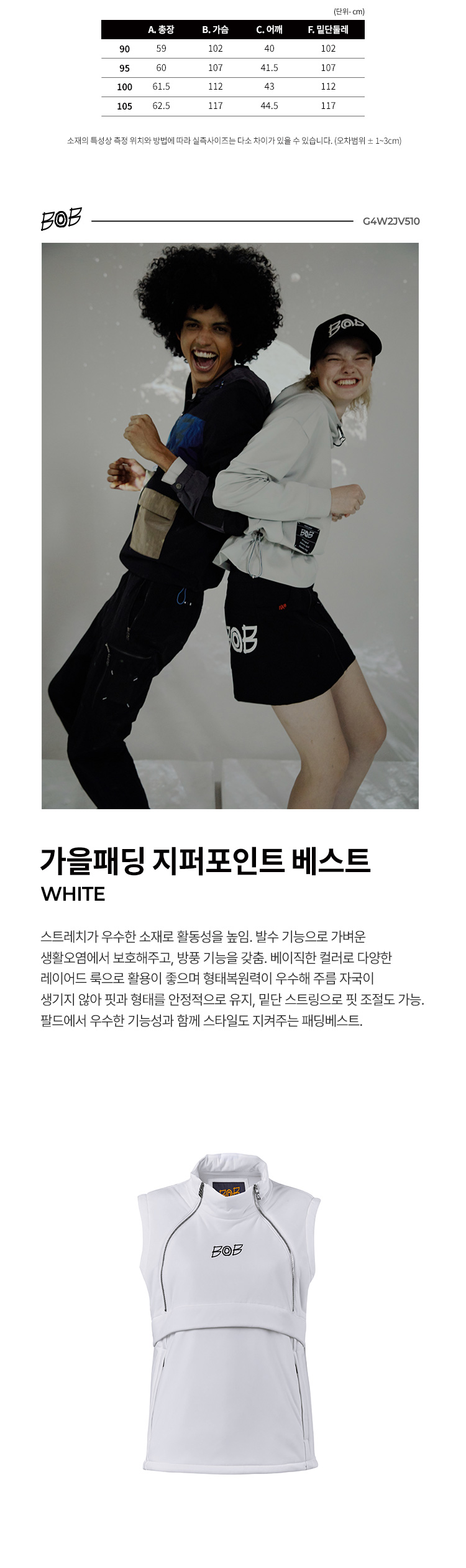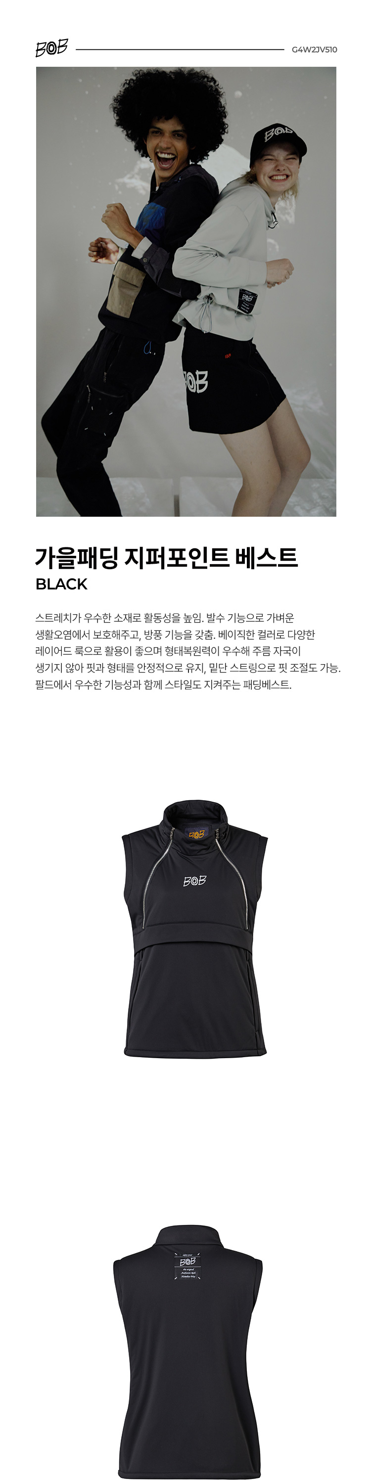 BOB 비오비 여성 가을 간절기 패딩 지퍼포인트 베스트 G4W2JV510