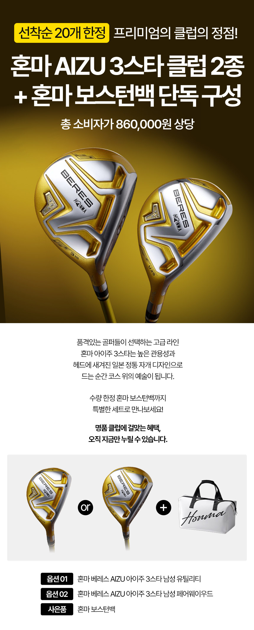 혼마 베레스 AIZU 아이주 3스타 남성 유틸리티 / 페어웨이우드 택1 + 보스턴백증정