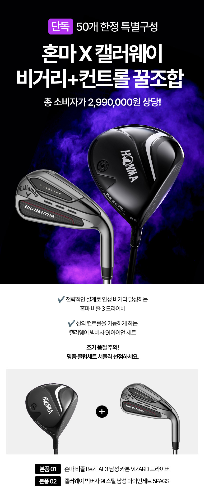 혼마 비즐3 BeZEAL3 남성 드라이버+캘러웨이 빅버사 9I 스틸 아이언세트 클럽세트