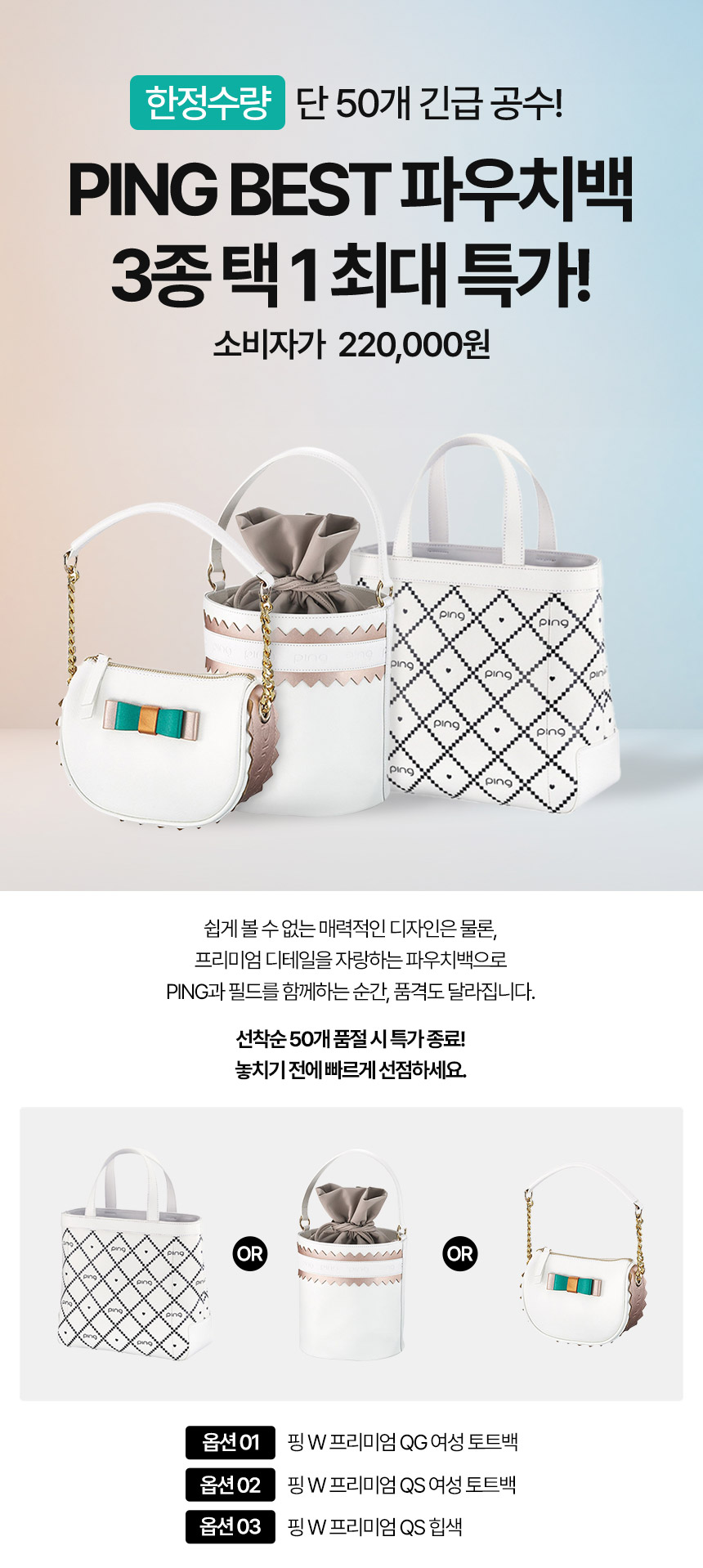 핑 W 프리미엄 여성 토트백 파우치 3종 택1