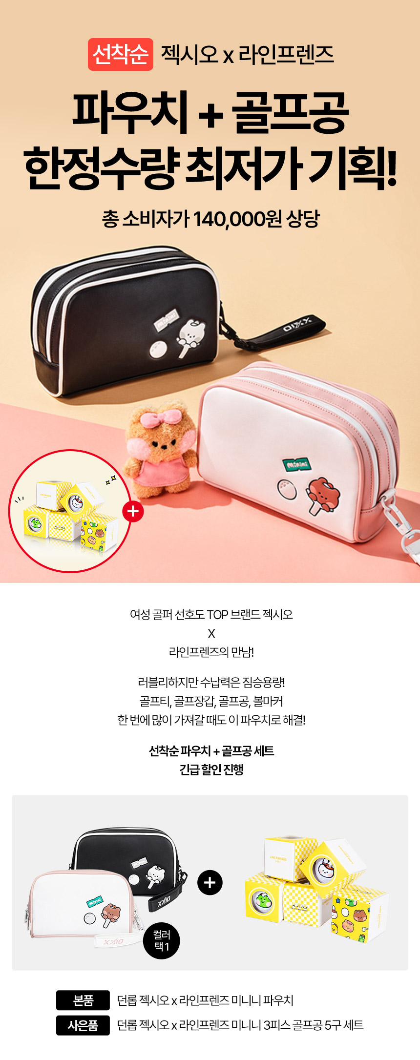 [전시상품] 던롭 젝시오 x 라인프렌즈 미니니 파우치 GGF 23034I + 라인프렌즈 골프공 5구 세트