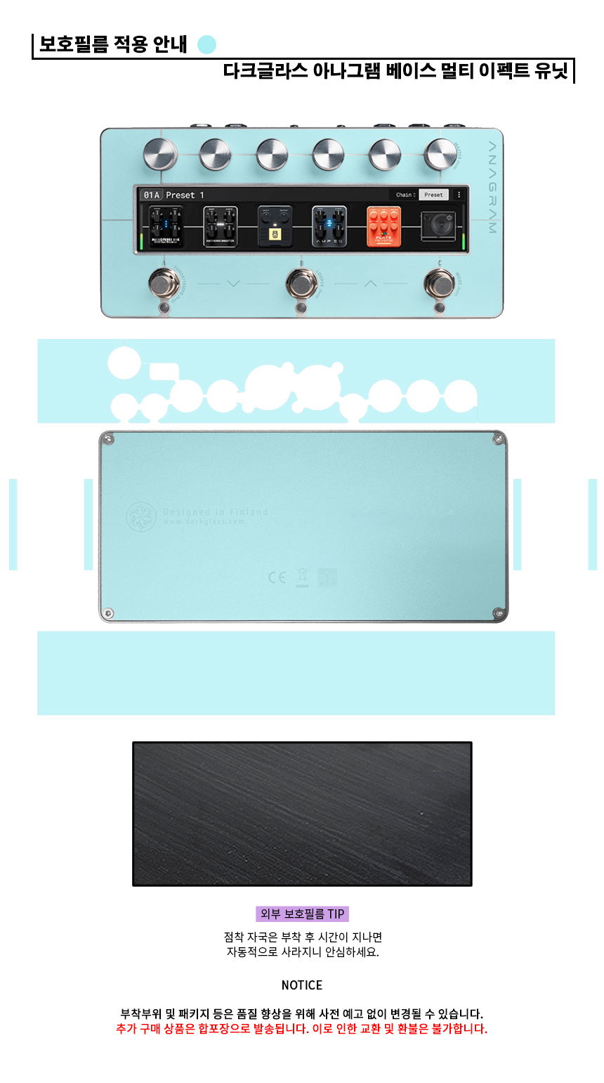 다크글라스 아나그램 베이스 멀티 이펙트 유닛 올레포빅 고광택 액정 외부 보호필름 세트