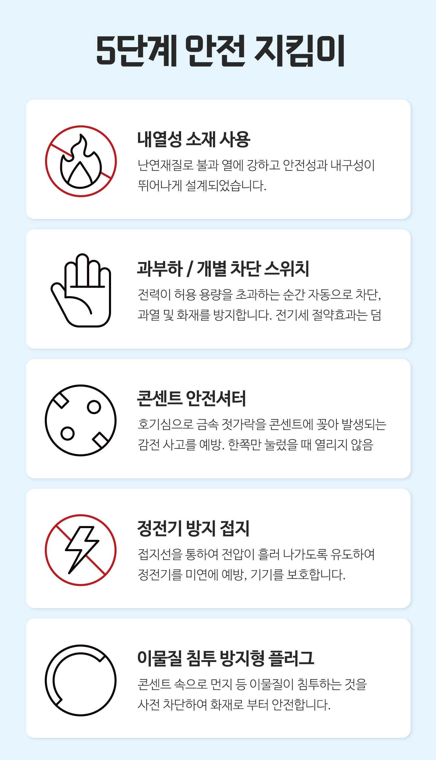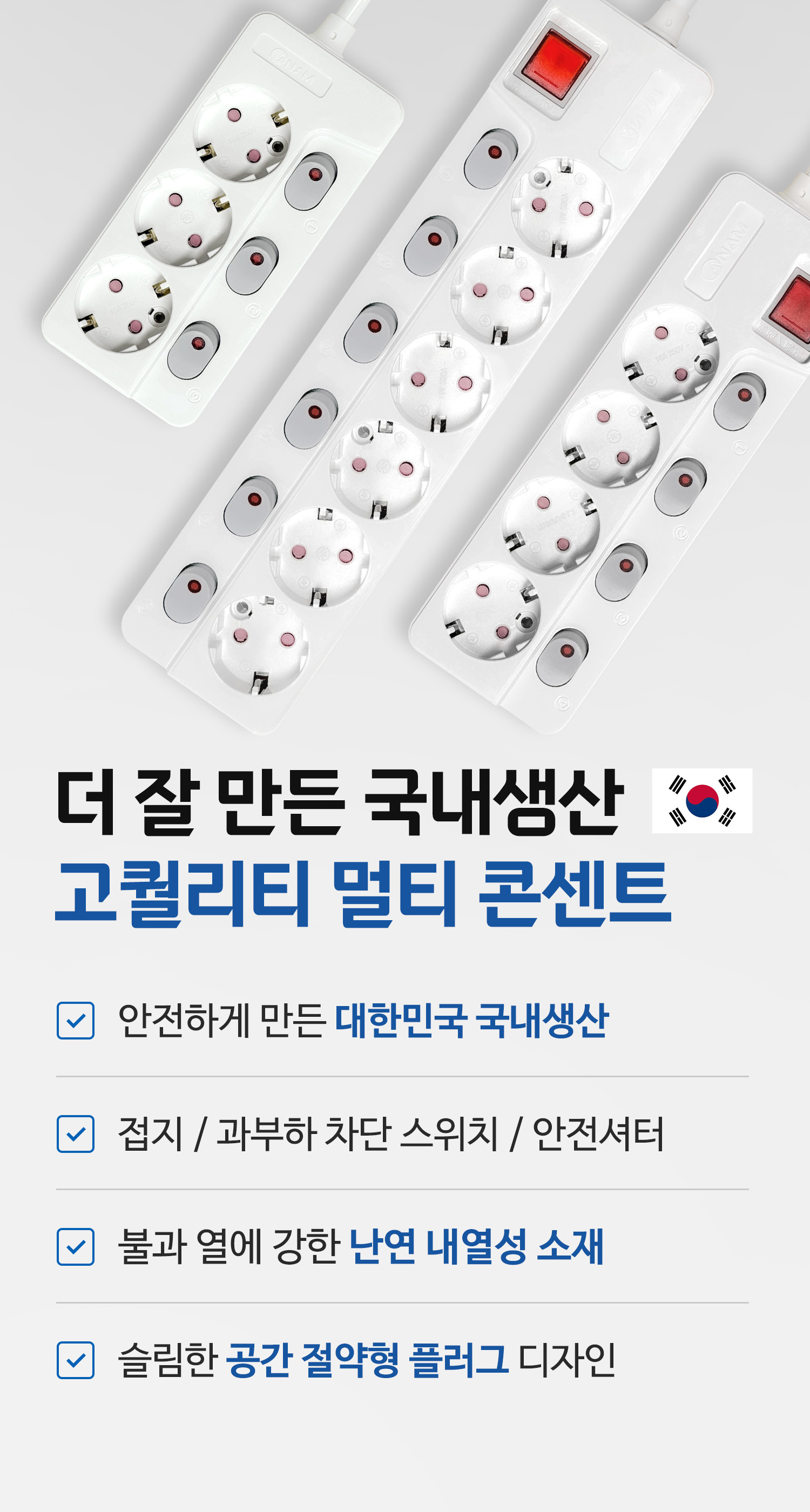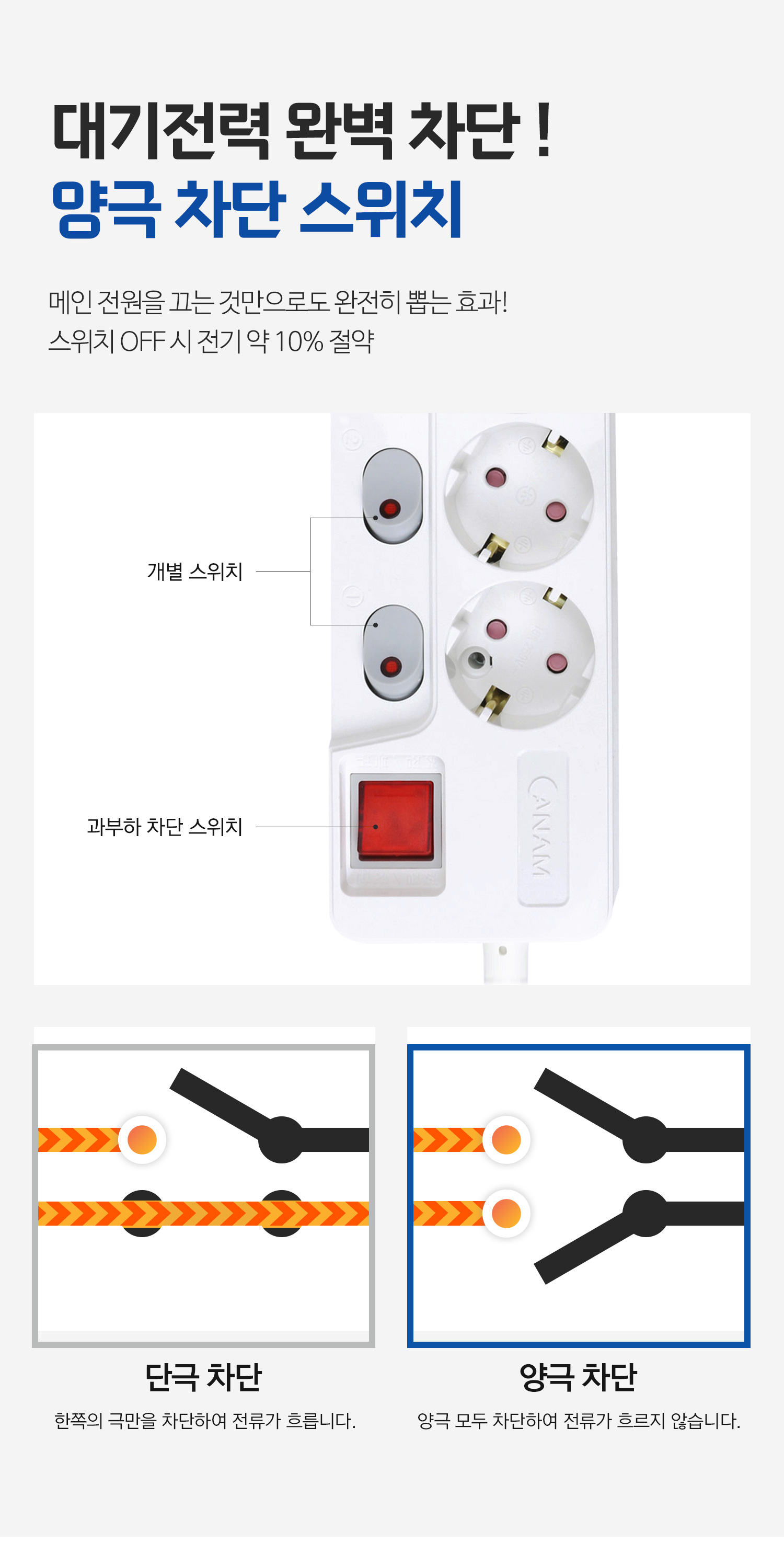 [캠플러스] 아남 국산 멀티탭 6구 1.5M 개별 스위치 절전 안전 콘센트