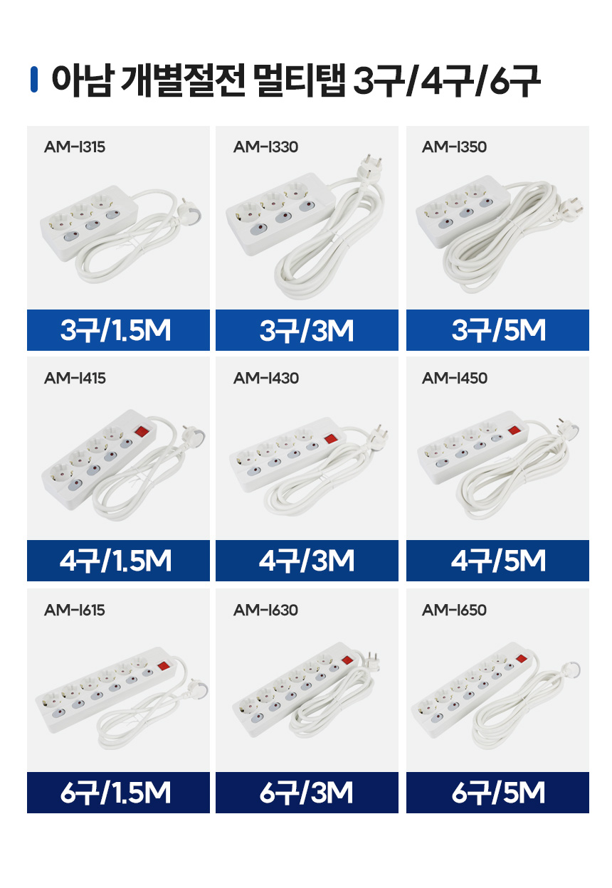[캠플러스] 아남 국산 멀티탭 6구 5M 개별 스위치 절전 과부하 차단 안전 콘센트