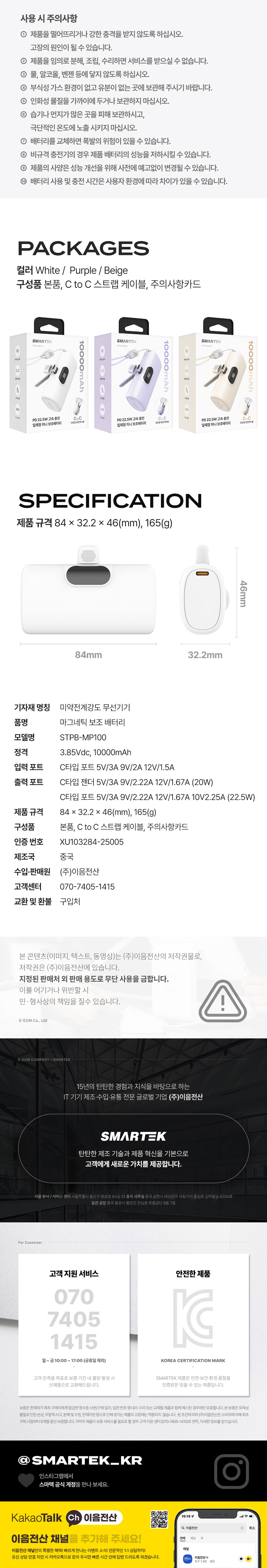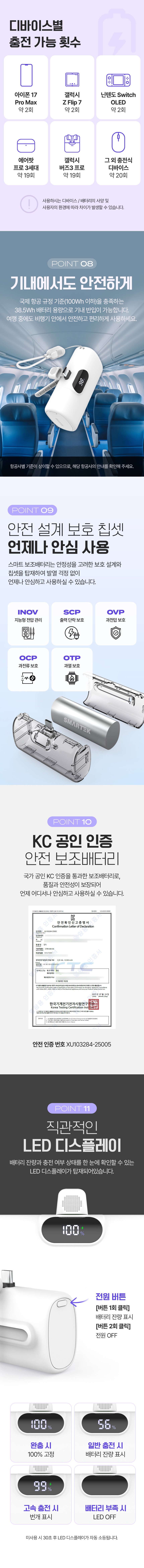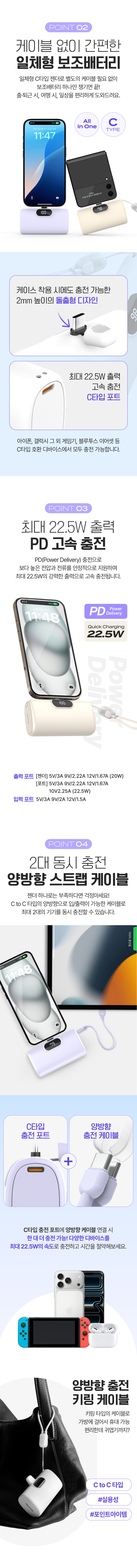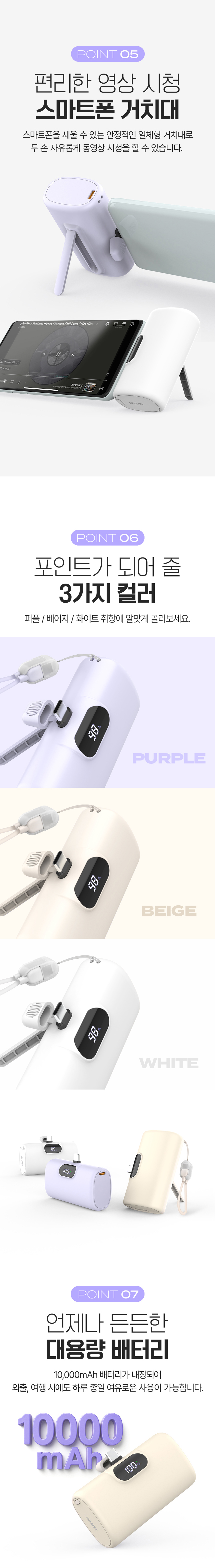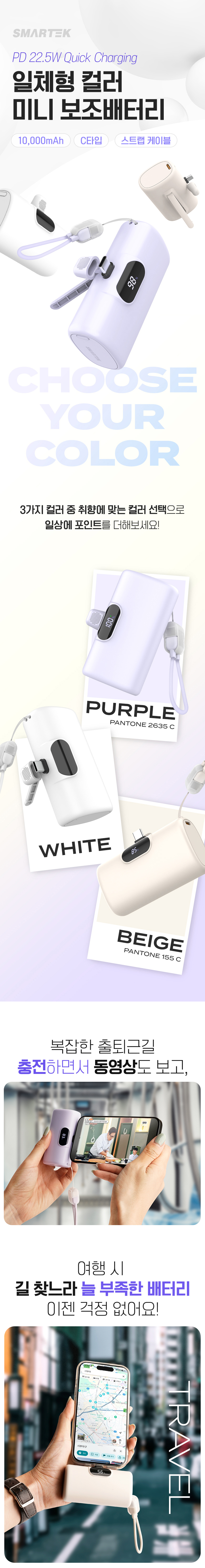 스마텍 스트랩 케이블 고속 충전 C타입 미니 도킹형 보조배터리 10000 STPB-MB100