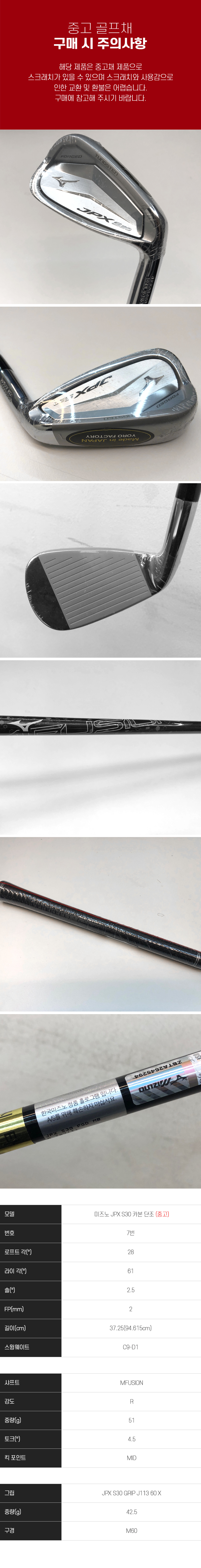 홈 골프/스포츠/레저 골프 골프클럽 아이언 [중고시타클럽]미즈노 JPX S30 카본 단조 낱개아이언[남성용][7번][MFUSION I] 상품번호 B0708531 [중고채]24미즈노 낱개아이언 JPX S30 IR GR 7번 MFUSION I 4,800원 삼성카드 4,800원 신한카드 2,970 쿠폰할인 1 / 2 할인가 96,030원 99,000원 최대혜택가 10% 89,310원 혜택 모두보기 적립 최대 e.POINT 적립 1,920P 자세히보기 배송비 무료배송 카드혜택 카드사별 무이자 혜택 > 팝업 닫기 재입고 알림을 신청 하시겠어요? 취소 재입고 알림 받기 팝업 닫기 재입고 알림이 신청 되었습니다. * 30일 후 자동 해제 * 마이랜드 재입고 알림 내역에서 확인 가능 확인 팝업 닫기 재입고 알림을 해제 하시겠어요? * 미입고시 2025-06-20 자동 해제 취소 지금 해제하기 팝업 닫기 재입고 알림이 해제 되었습니다. 확인 쿠폰받기 팝업 닫기 다운로드 받은 쿠폰은 마이랜드>쿠폰에서 확인가능합니다. 최소구매금액과 할인액을 확인하세요. 일부 쿠폰은 조기소진 될 수 있습니다. 쿠폰별 발급수량은 ID당 1개입니다. APP에서 구매하면 1% 추가 적립 [필수] 옵션 R/ 총 상품금액 96,030원 생활파워케어 포함가 생활파손케어 포함가 구매하기 장바구니 할인 · 혜택 모두보기 팝업 닫기 정상가 99,000원 쿠폰할인 12월 골프 카테고리 추가할인 2,970원 할인가 96,030원 e.POINT 최대적립 i 창닫기 최대 적립 포인트는 할인가 기준으로 계산되며, 최종결제금액과 결제 조건에 따라 적립금액이 변경됩니다. 주문서에서 최종 적립혜택을 다시 한번 확인해주세요. 1,920P 기본적립 960P 앱 구매시 추가적립 추천 960P 카드혜택 삼성카드 캐시백(일반결제) 4,800원 신한카드 캐시백(일반결제) 4,800원 ※ 캐시백은 결제일 기준 익익월 10일 이내 고객님의 카드대금 결제통장으로 카드사에서 입금됩니다. 최대 혜택가 89,310원 삼성카드 캐시백 유의사항 삼성카드로 결제 시 5% 캐시백(최대 20만원 한도) 최소 주문 금액 5만원 / 미충족시 캐시백 지급 불가 ? * 상품 상세페이지에서 혜택대상으로 표기된 일부 상품에만 혜택적용 * 삼성카드 즉시할인 행사와 중복적용 가능 * 체크카드, 법인카드, 기업카드(사업자 포함), 기프트카드(충전포함), 하이브리드 카드, bc카드로 결제 시 적용 제외 * 스마일페이, Npay, 카카오페이, SSGPAY, 페이코, L.페이, 삼성페이, 토스, 차이페이, 무통장입금으로 결제 시 적용 제외 * 최종카드결제금액 기준으로 캐시백 혜택이 적용(쿠폰, 포인트, e.POINT, OK캐시백 등을 차감한 금액) * 캐시백은 결제일 기준 익익월 10일 내 지급(캐시백 지급전 카드승인 취소, 카드사 탈회 시 지급되지 않음) * 기업회원, 비회원 주문건은 캐시백 대상에서 제외 * 캐시백 행사는 당사 사정에 의하여 예고 없이 조기 종료될 수 있습니다.? 신한카드 캐시백 유의사항 신한카드로 결제 시 5% 캐시백(최대 20만원 한도) 최소 주문 금액 5만원 / 미충족시 캐시백 지급 불가 * 상품 상세페이지에서 혜택대상으로 표기된 일부 상품에만 혜택적용 * 신한카드 즉시할인 행사와 중복적용 가능 * 체크카드, 법인카드, 기업카드(사업자 포함), 기프트카드(충전포함), 하이브리드 카드, bc카드로 결제 시 적용 제외 * 스마일페이, Npay, 카카오페이, SSGPAY, 페이코, L.페이, 삼성페이, 토스, 차이페이, 무통장입금으로 결제 시 적용 제외 * 최종카드결제금액 기준으로 캐시백 혜택이 적용(쿠폰, 포인트, e.POINT, OK캐시백 등을 차감한 금액) * 캐시백은 결제일 기준 익익월 10일 내 지급(캐시백 지급전 카드승인 취소, 카드사 탈회 시 지급되지 않음) * 기업회원, 비회원 주문건은 캐시백 대상에서 제외 * 캐시백 행사는 당사 사정에 의하여 예고 없이 조기 종료될 수 있습니다. * e.POINT 적립 구매확정 시 자동 적립됩니다. 최종결제금액 및 결제조건에 따라 e.POINT 적립액은 달라질 수 있습니다. 쿠폰, 포인트, e.POINT 사용액은 최종결제금액에서 제외됩니다. 최종 적립액은 주문서에서 다시 한번 확인해 주세요. 사용기간은 적립일 기준 3년 후 말일까지입니다. 소멸일 이후 주문취소 시 복원되지 않습니다. 온라인쇼핑몰에서만 사용 가능한 포인트로 1P부터 사용 가능합니다. 카드 무이자 할부 팝업 닫기 12월 무이자 혜택안내 BC카드 5만원 이상 2,3,4,5 개월 무이자 할부 국민카드 5만원 이상 2,3,4,5 개월 무이자 할부 롯데카드 5만원 이상 2,3,4,5 개월 무이자 할부 전자랜드 롯데카드 5만원 이상 2,3,4,5 개월 무이자 할부 삼성카드 5만원 이상 2,3 개월 무이자 할부 신한카드 5만원 이상 2,3 개월 무이자 할부 현대카드 5만원 이상 2,3 개월 무이자 할부 하나카드 5만원 이상 2,3,4 개월 무이자 할부 농협카드 5만원 이상 2,3,4,5,6 개월 무이자 할부 전자랜드 스페셜 롯데카드 5만원 이상 2,3,4,5 개월 무이자 할부 우리카드 5만원 이상 2,3,4,5 개월 무이자 할부 12월 부분무이자 / 특별무이자 혜택안내 BC카드 5만원 이상 6,10,12개월 부분무이자 할부 6개월 부분무이자 (1~3회차 이자 고객부담) 10개월 부분무이자 (1~4회차 이자 고객부담) 12개월 부분무이자 (1~5회차 이자 고객부담) 국민카드 5만원 이상 6,10개월 부분무이자 할부 6개월 부분무이자 (1~3회차 이자 고객부담) 10개월 부분무이자 (1~5회차 이자 고객부담) 삼성카드 5만원 이상 7,11개월
