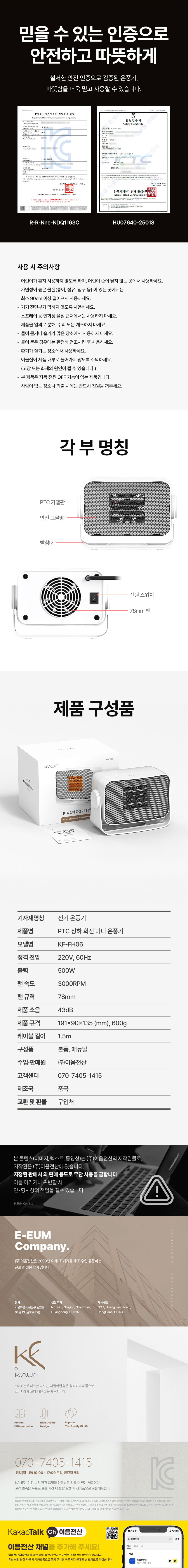 카프 상하 회전 각도 조절 팬히터 PTC 미니 원터치 온풍기 KF-FH06