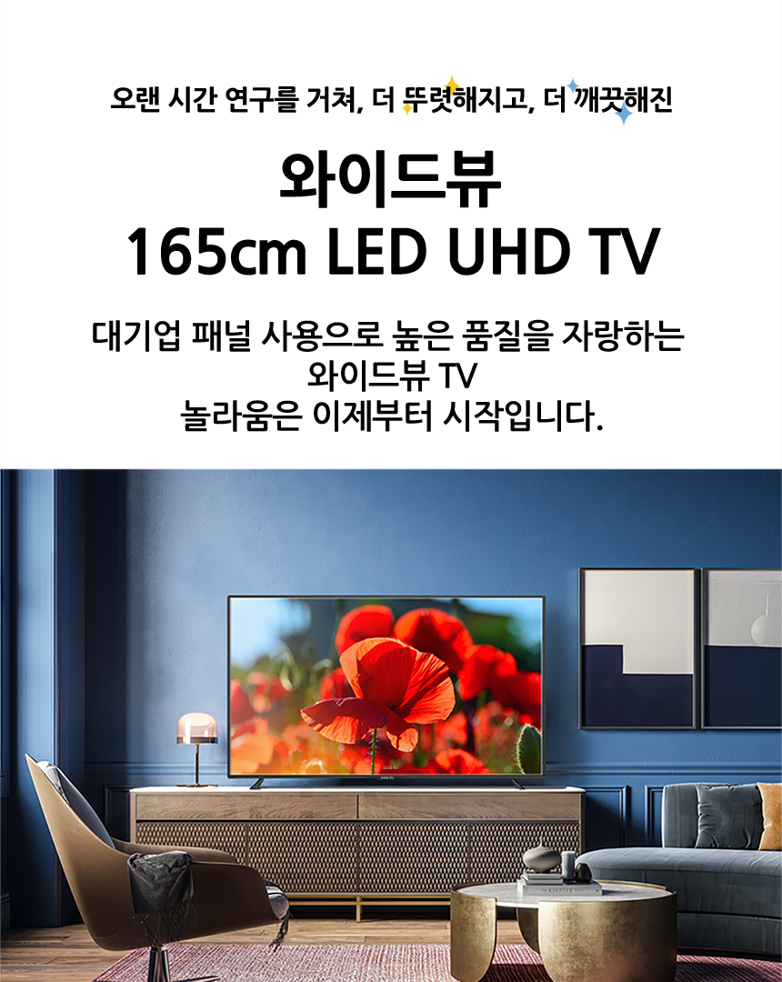 와이드뷰 165cm(65인치) UHD 4K 중소기업 TV EKW65UT1 기사방문 스탠드 설치 무료
