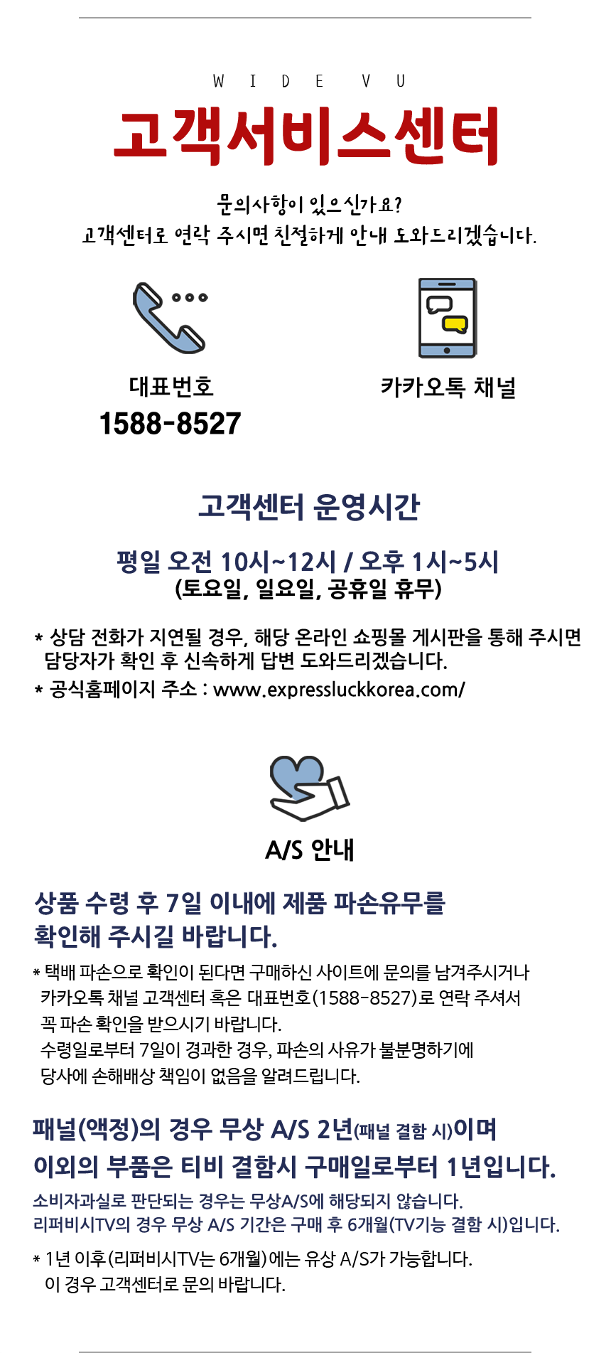 ※ 단순변심으로 인한 제품 반품 시 왕복 배송비는 고객님 부담입니다.(설치 상품은 불가)