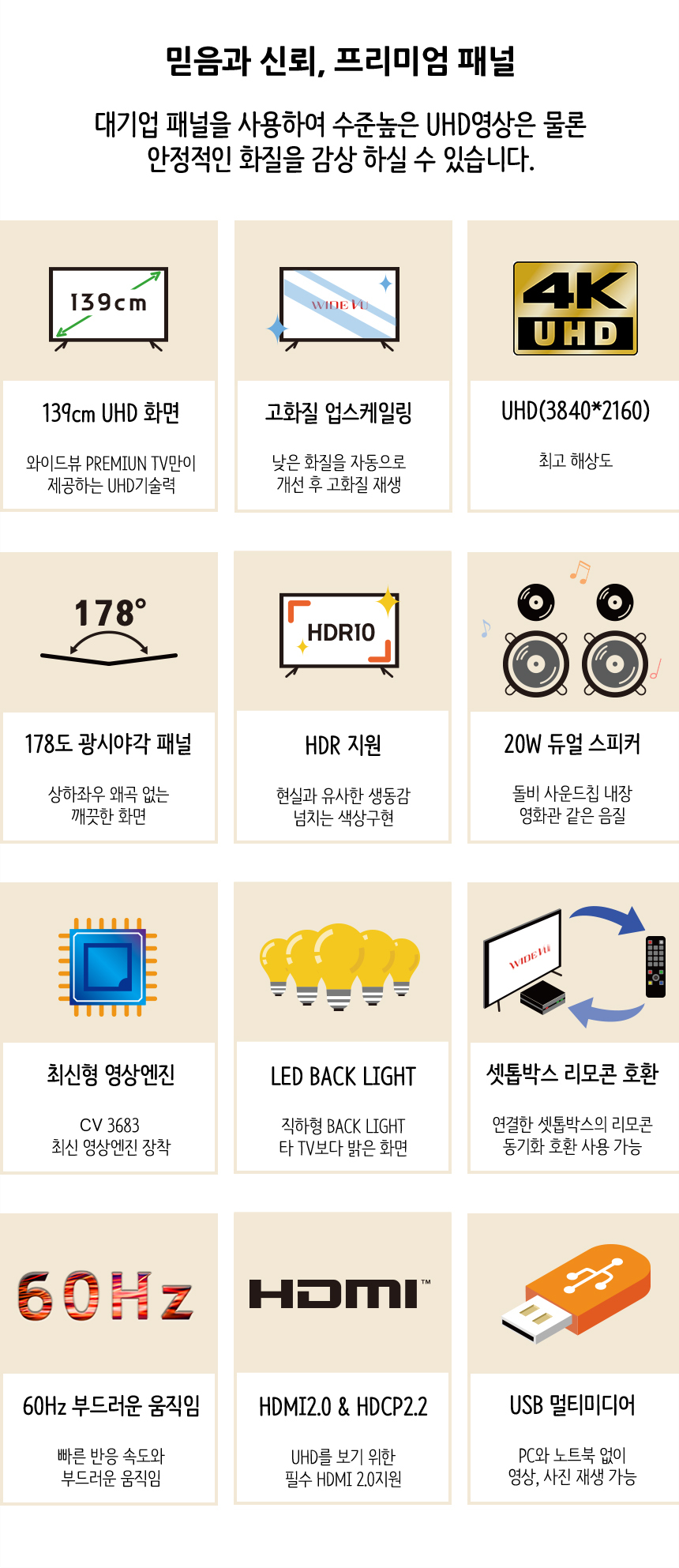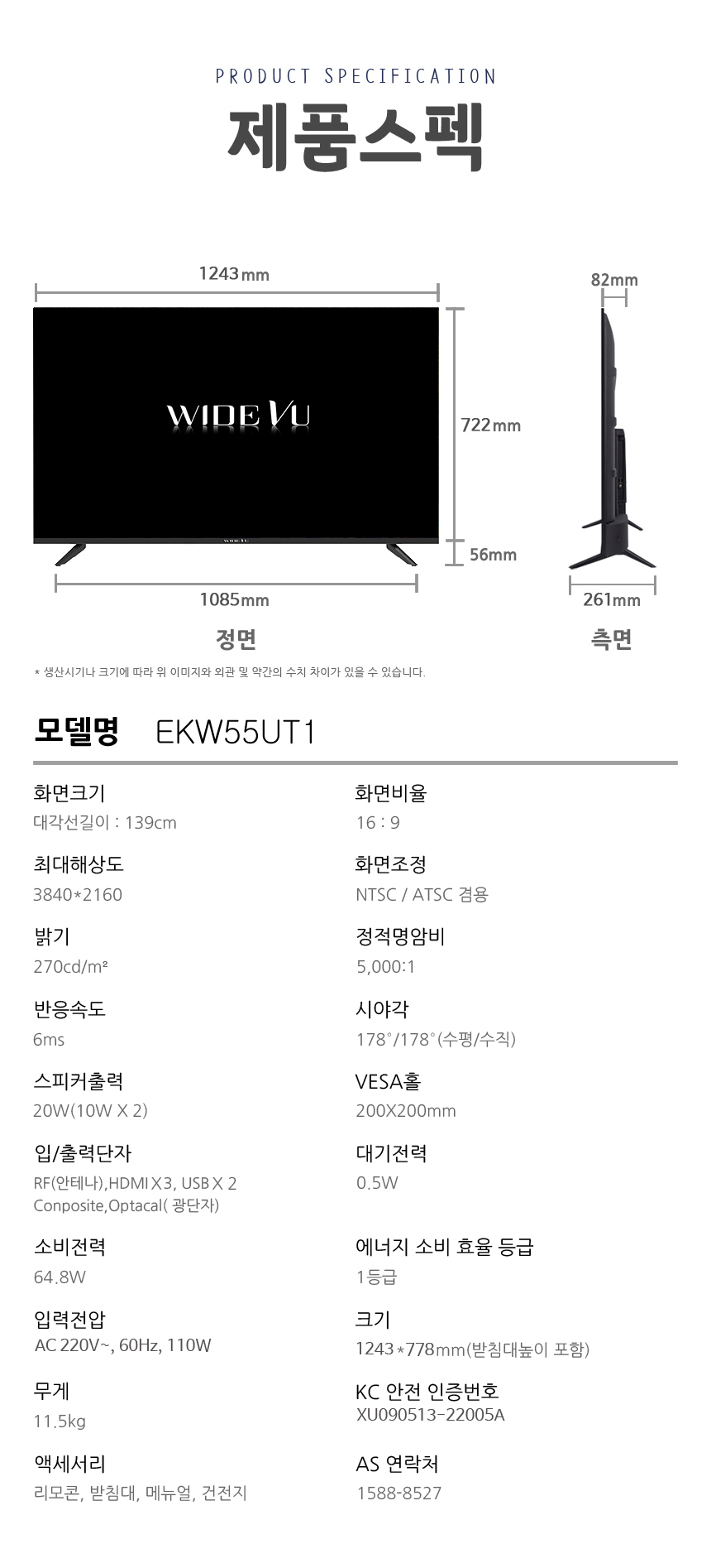 와이드뷰 139cm TV EKW55UT1 4K UHD 1등급 고화질 방문설치