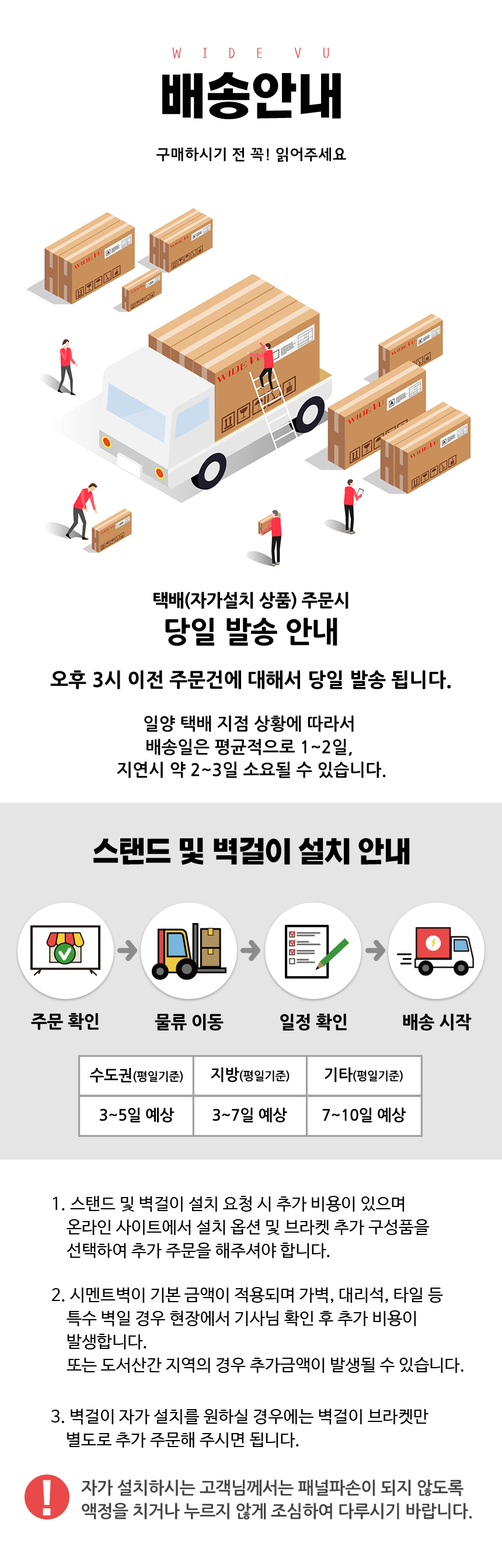 • - 아래 배송 지역은 제품 주문 시 배송 일정을 상담해 주세요(일부 도서산간지역은 설치 배송이 불가할 수 있습니다.)