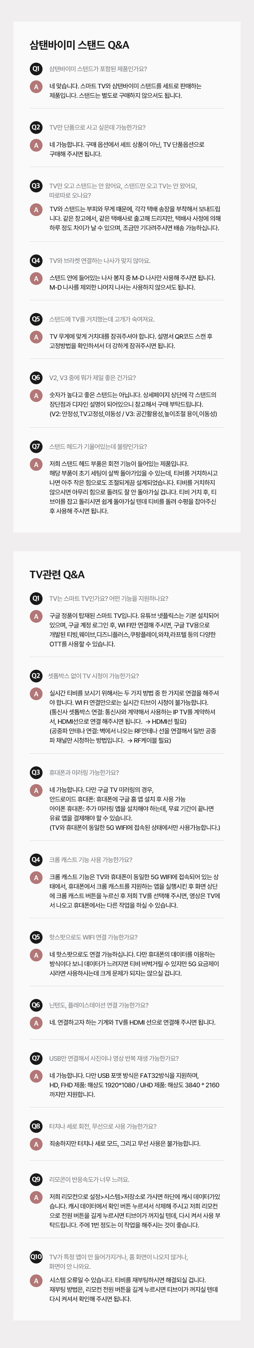 ※ 상품 관련 문의사항이 아닌 반품/교환관련 등의 문의는 고객센터 1:1 문의를 이용해주세요.