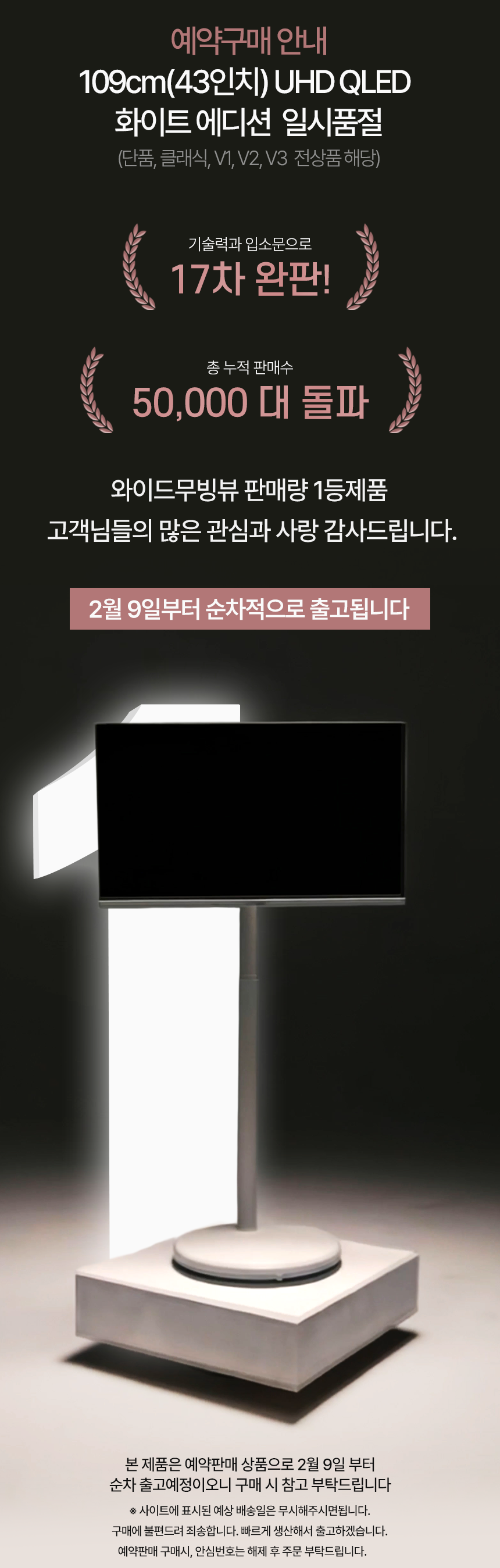 와이드무빙뷰 화이트에디션 삼탠바이미 셋트 QLED 109cm(43인치) 4K UHD 스마트 이동식 TV+스피커 증정
