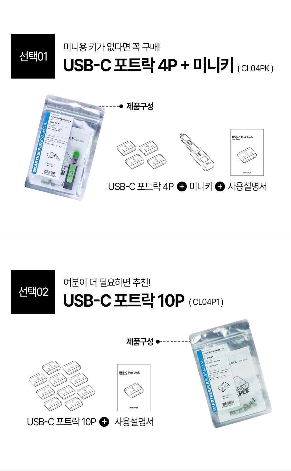 스마트키퍼 유일 국내 제조 USB-C 포트락 CL04PK 보안 잠금 차단 장치 시스템 물리보안