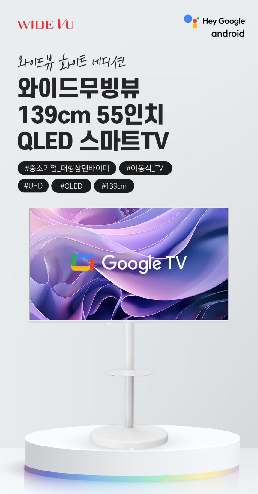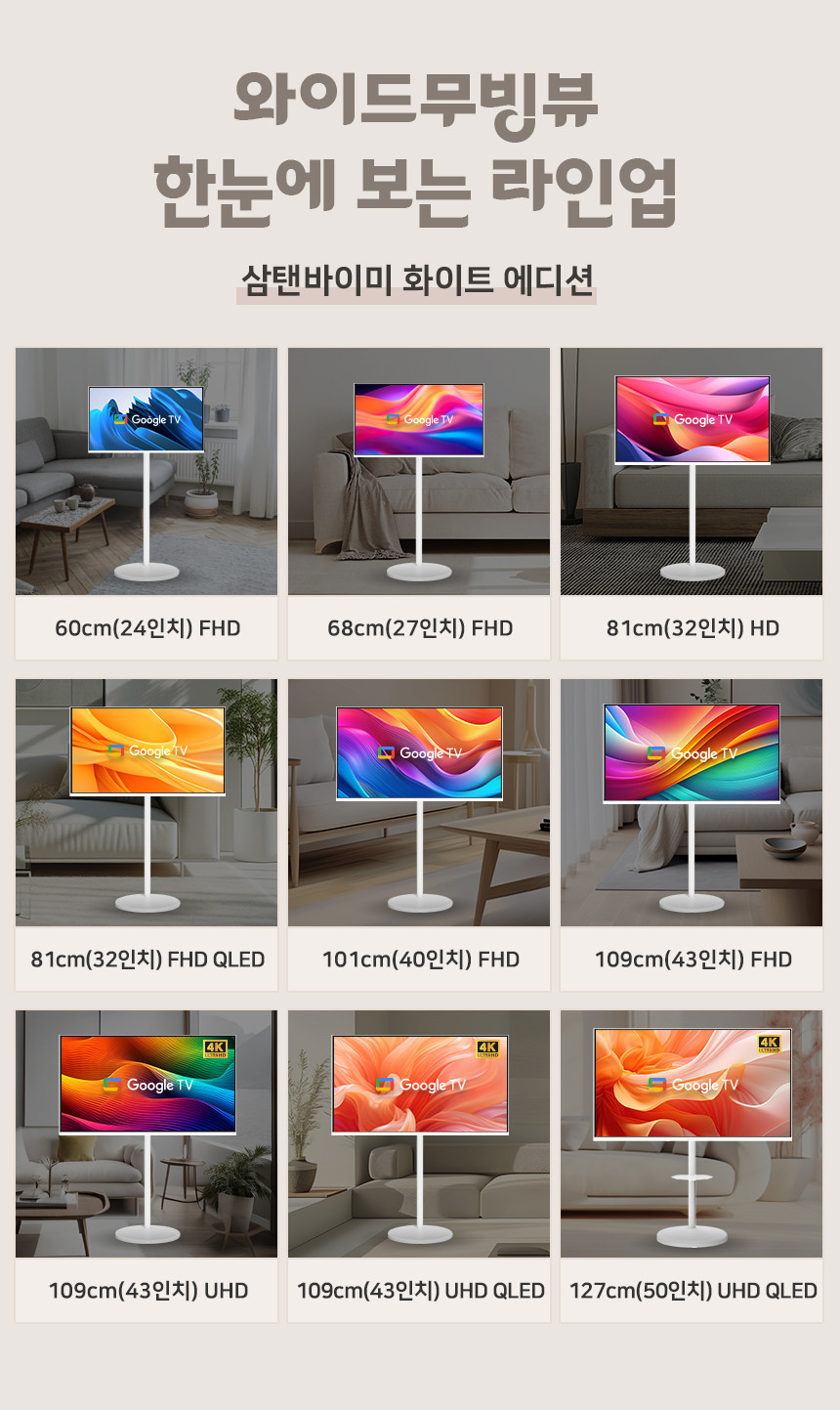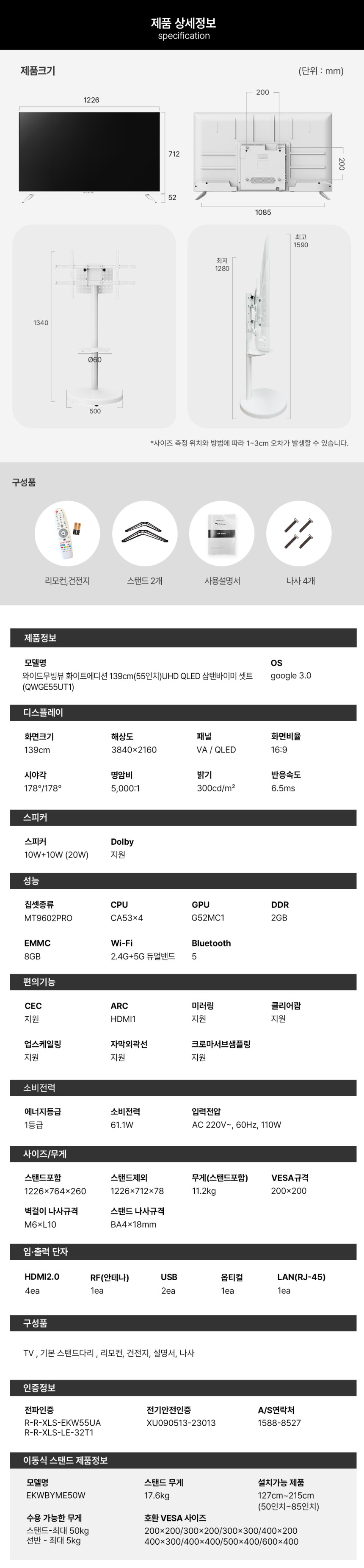와이드무빙뷰 화이트에디션 139cm(55인치) 구글 UHD QLED 스마트TV 대형 이동식스탠드 삼탠바이미