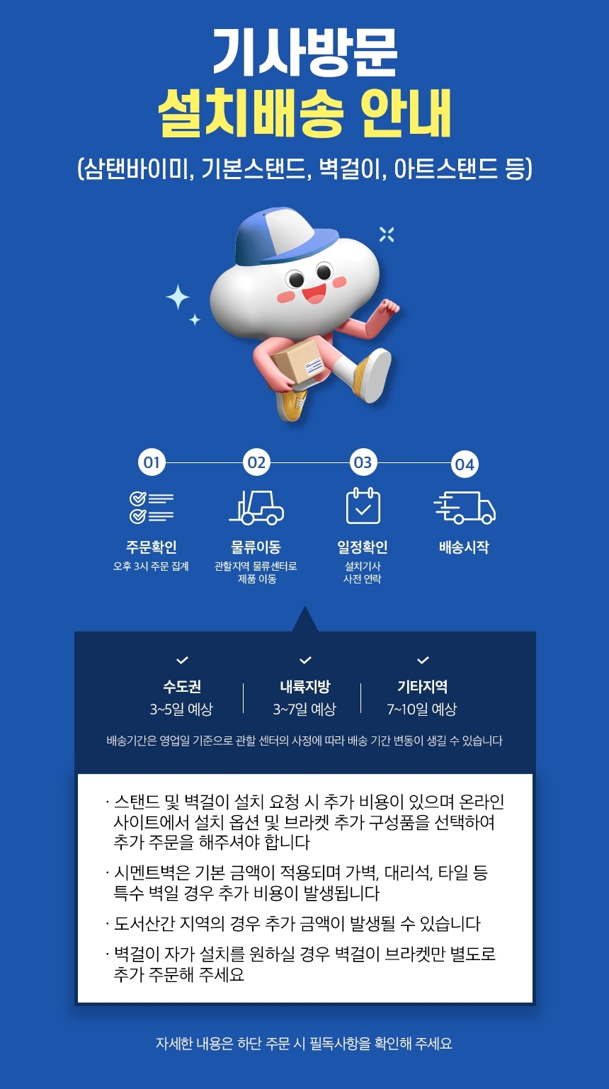 • - 아래 배송 지역은 제품 주문 시 배송 일정을 상담해 주세요(일부 도서산간지역은 설치 배송이 불가할 수 있습니다.)