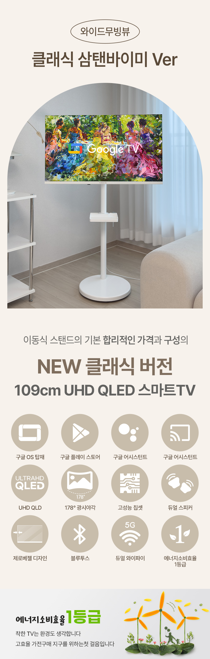 와이드무빙뷰 클래식 화이트에디션 43인치 QLED UHD TV+삼탠바이미 세트 이동식스탠딩 삼텐바이미