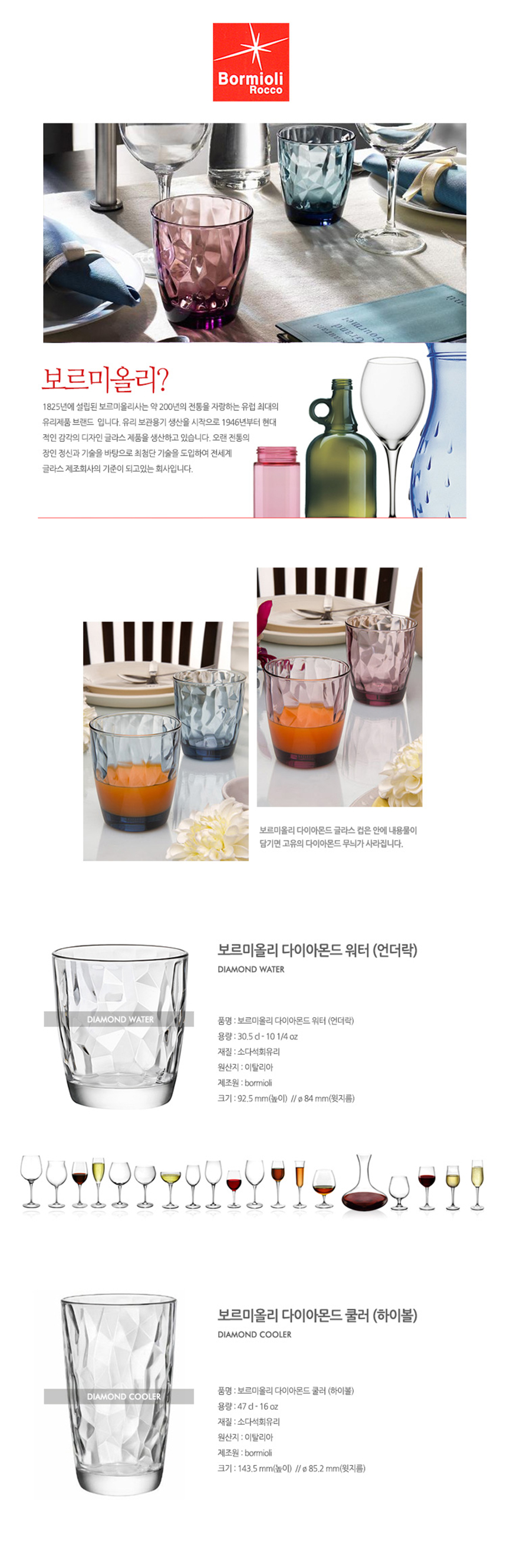 보르미올리 다이아몬드 쿨러 하이볼잔 470ml 6P 유리 맥주잔 주스컵