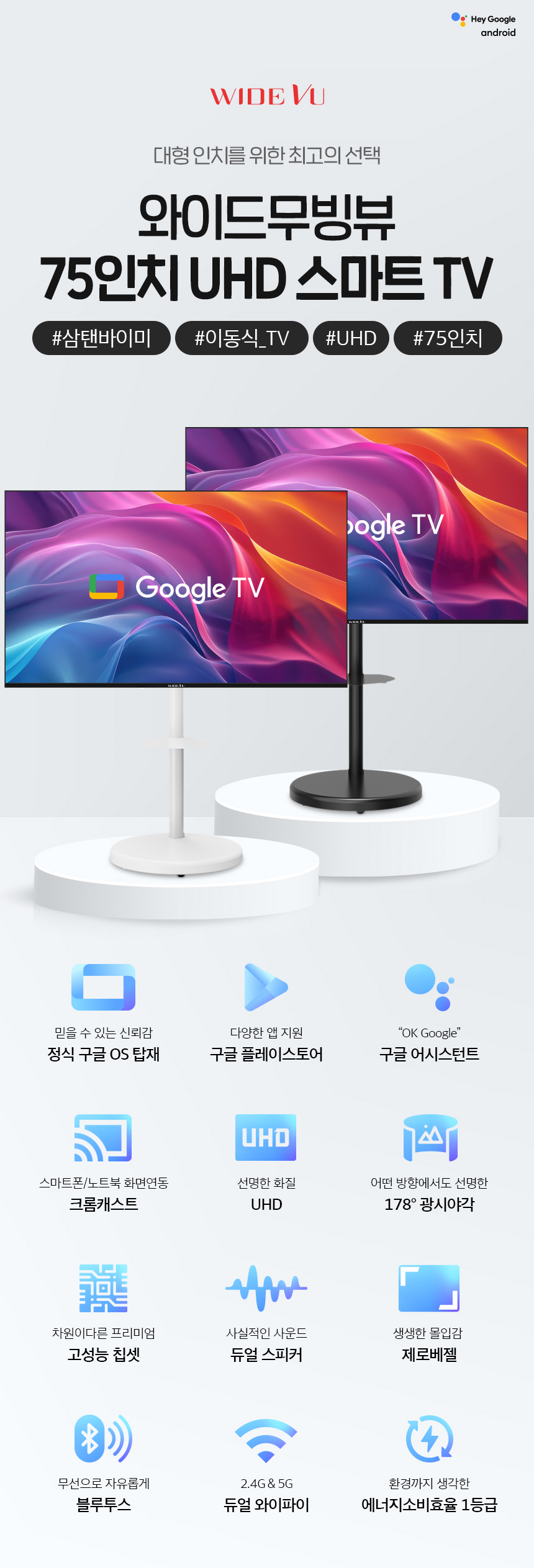 와이드무빙뷰 삼탠바이미 셋트 190cm(75인치) UHD 4K 스마트 이동식 TV 삼텐바이미 셀프설치가능
