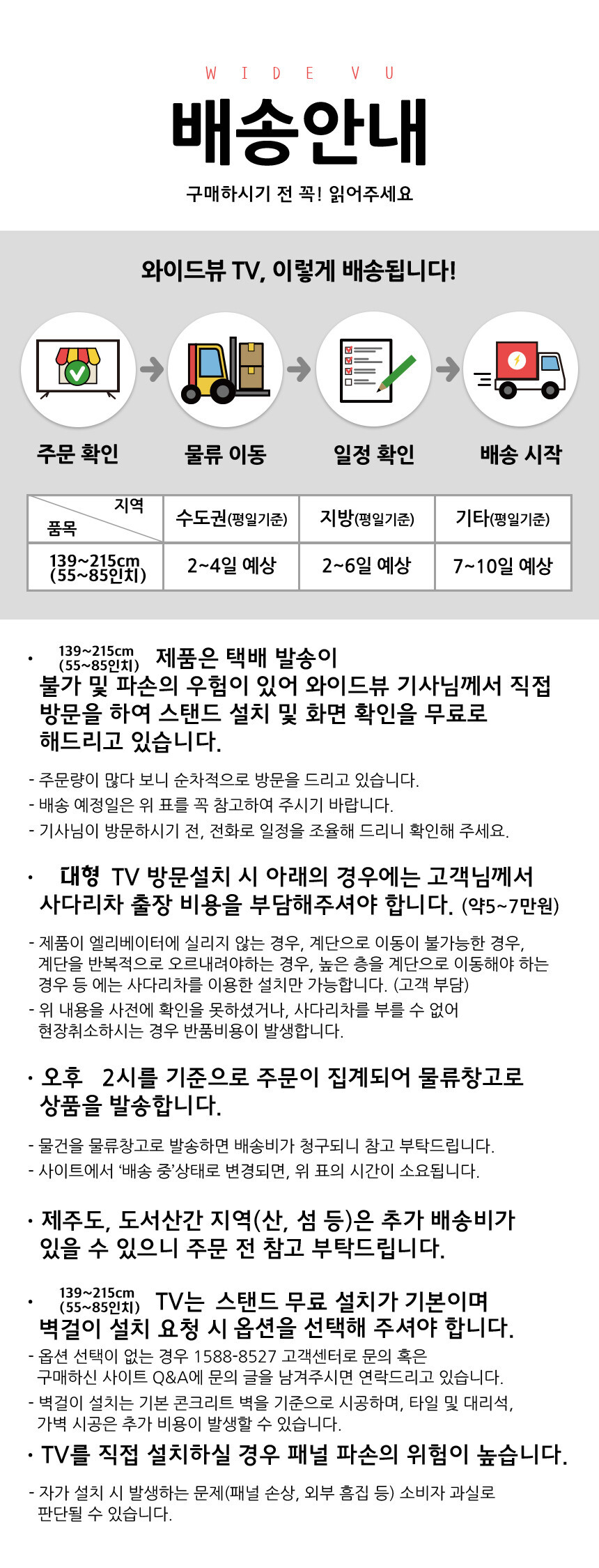 • - 아래 배송 지역은 제품 주문 시 배송 일정을 상담해 주세요(일부 도서산간지역은 설치 배송이 불가할 수 있습니다.)