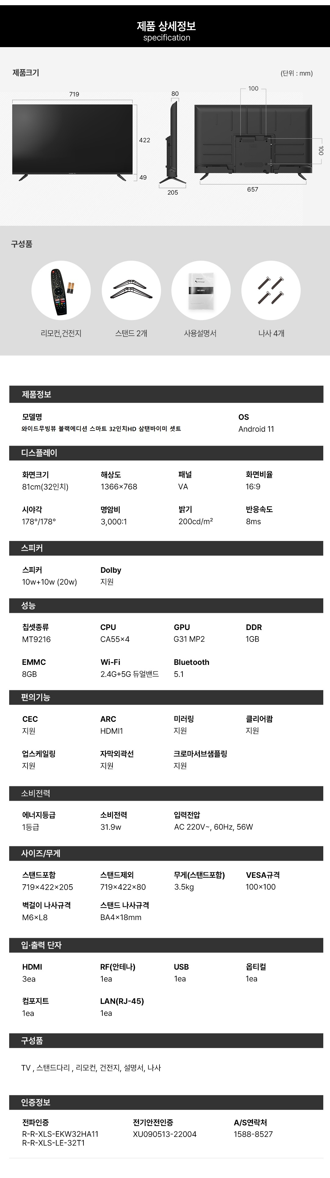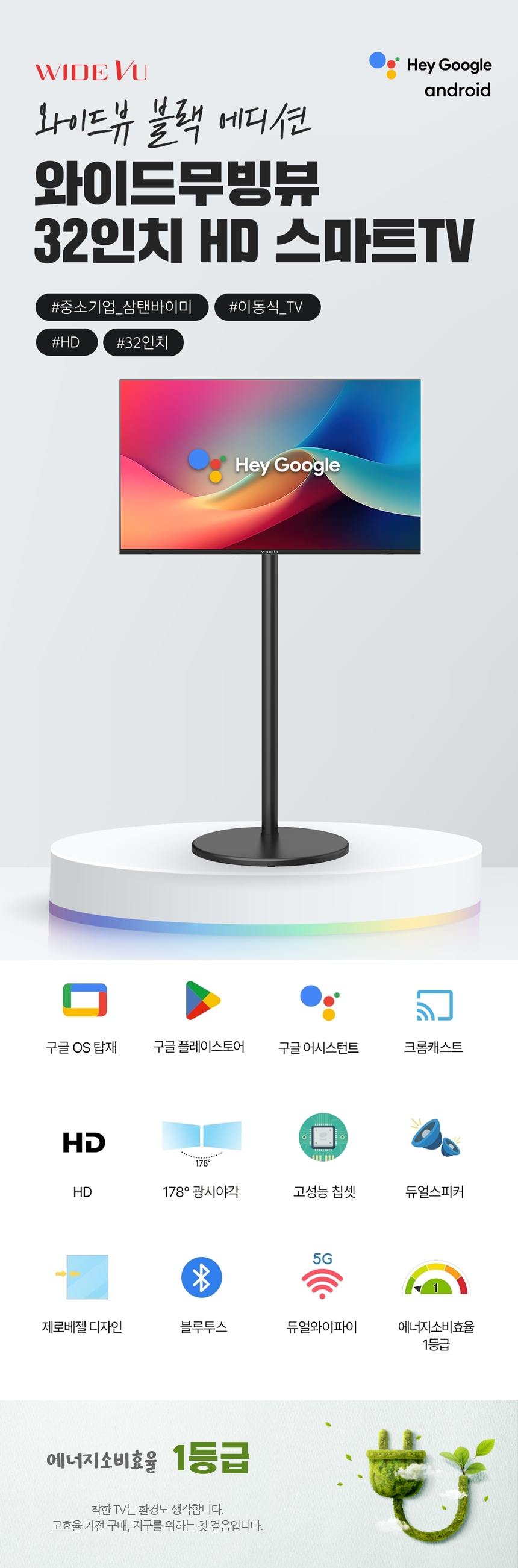 와이드무빙뷰 블랙에디션 삼탠바이미 셋트 81cm(32인치) HD 스마트 이동식 스탠딩 TV 삼텐바이미 V1