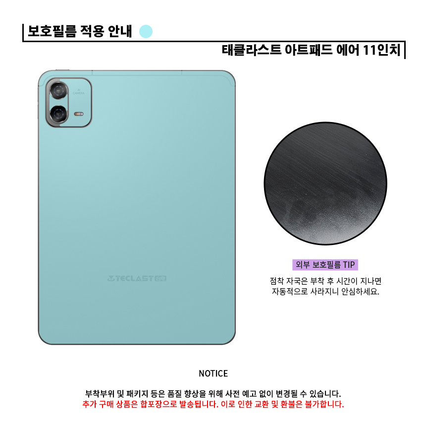 태클라스트 아트패드 에어 11 TLA002 후면 외부보호필름 2매