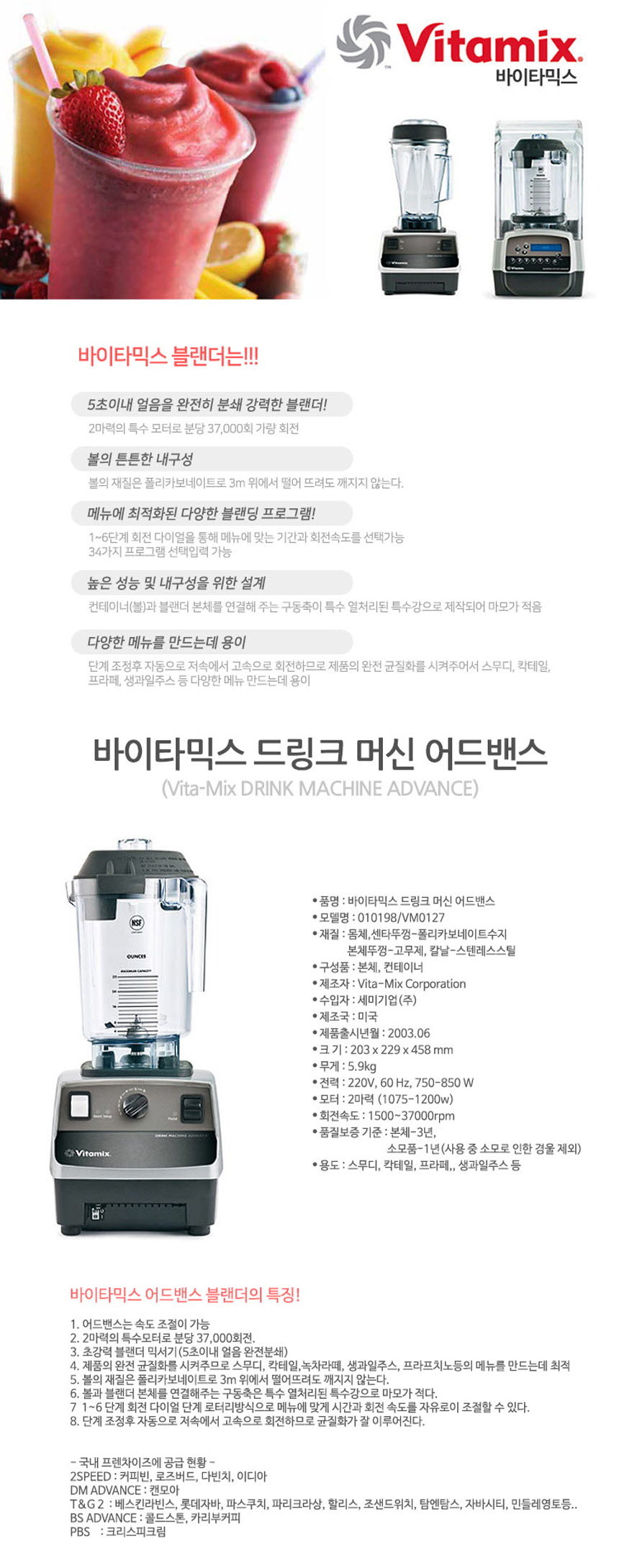 바이타믹스 드링크머신 어드밴스 블렌더 카페 업소용 믹서기