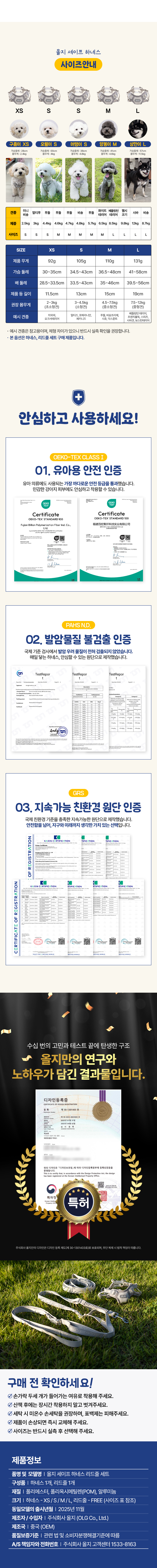 올지 세이프 하네스 리드줄 세트 슬개골 충격흡수 소형견 관절보호 중형견 강아지 애견 반려견 용
