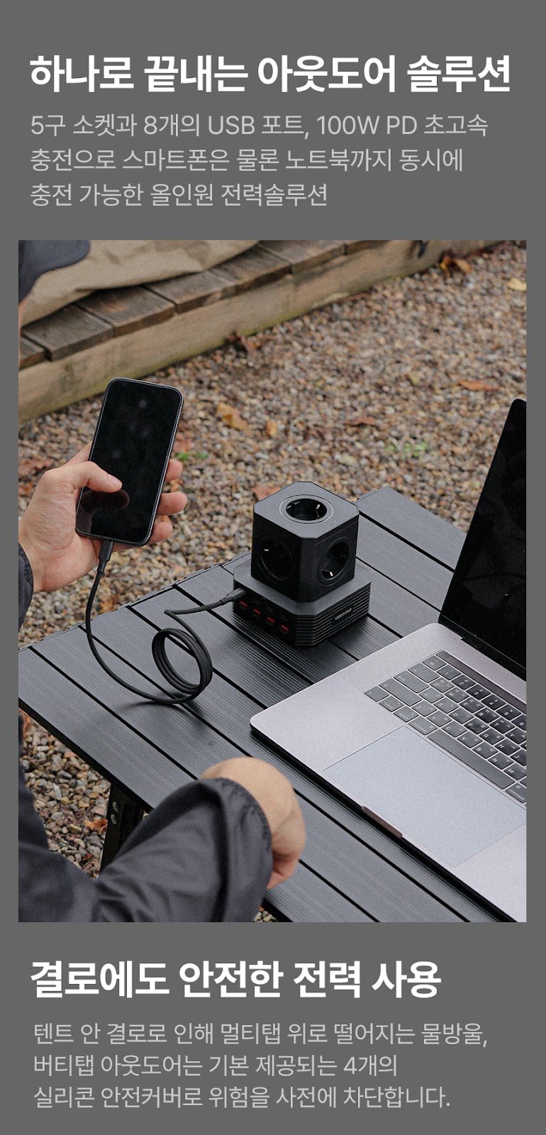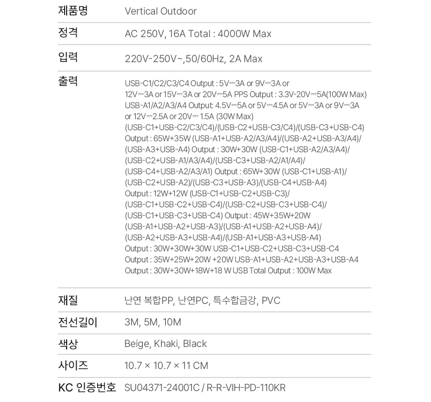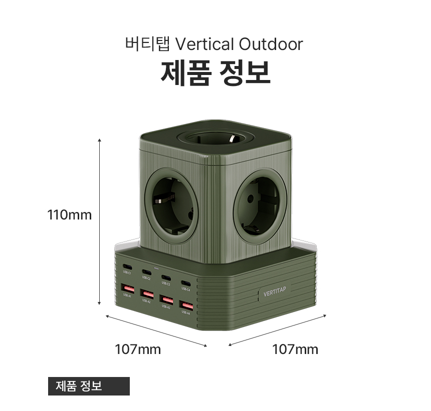 버티탭 버티컬 아웃도어 10M 고용량 릴선 리드선 13구 캠핑연장선 작업선 릴콘센트 캠핑전기선