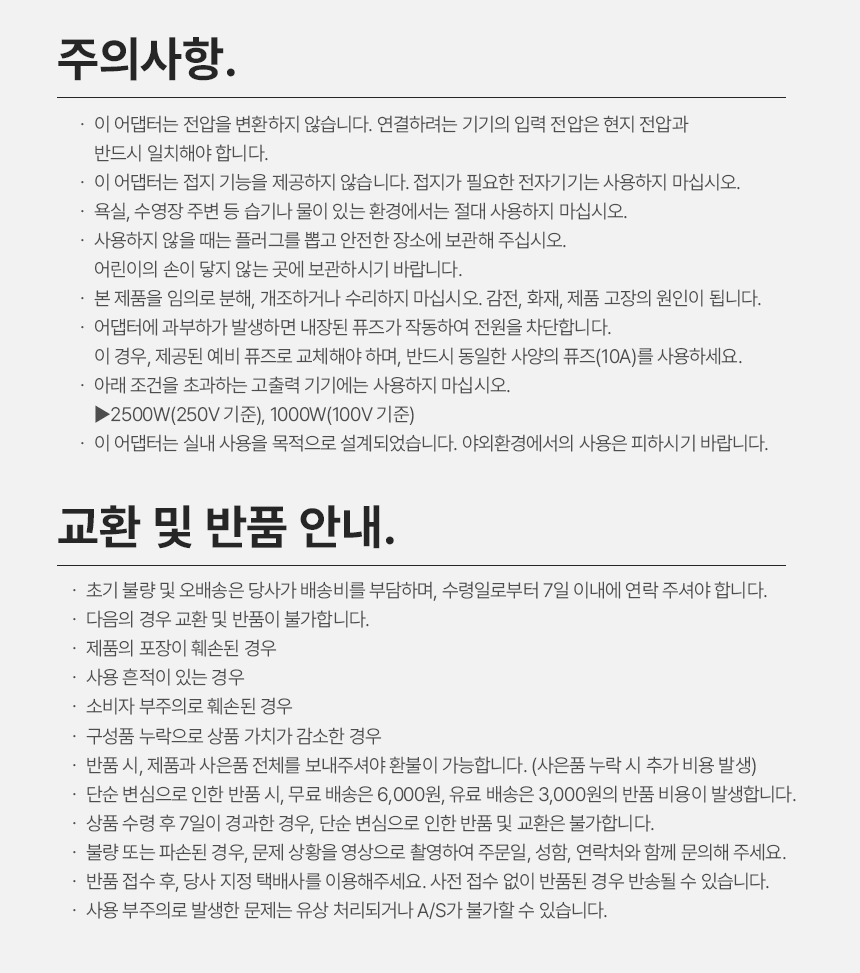 • ② 고객님의 단순변심으로 인한 교환/반품인 경우, 제품 수령 후 7일 이내에 신청해야 합니다.