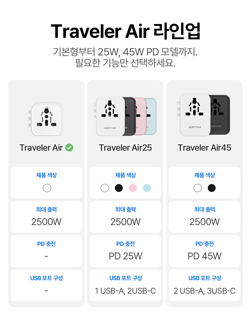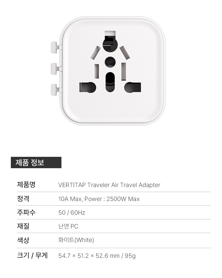버티탭 트레블러 에어 멀티 어댑터 해외 전세계 여행용 멀티탭 콘센트 플러그 돼지코 일본 베트남 중국