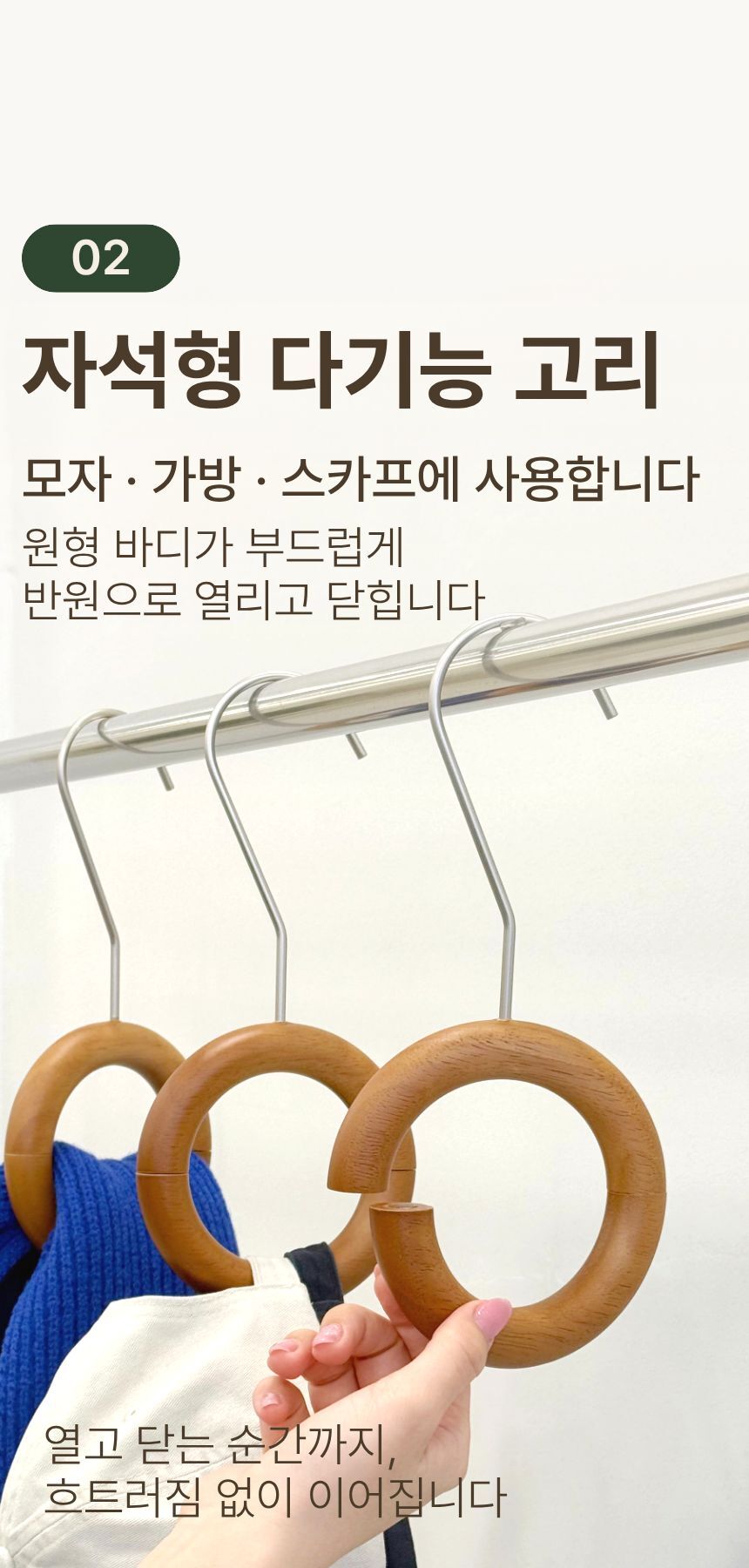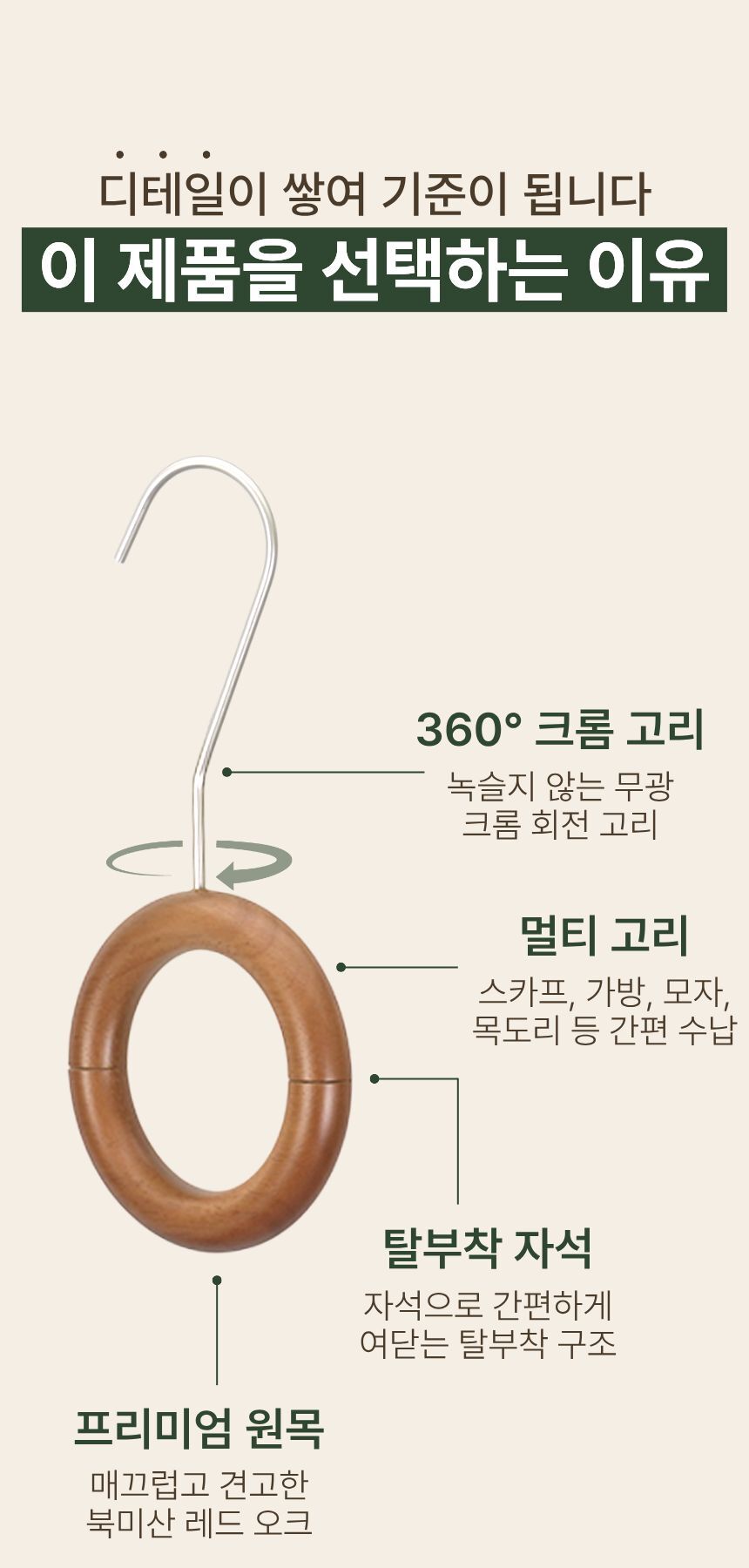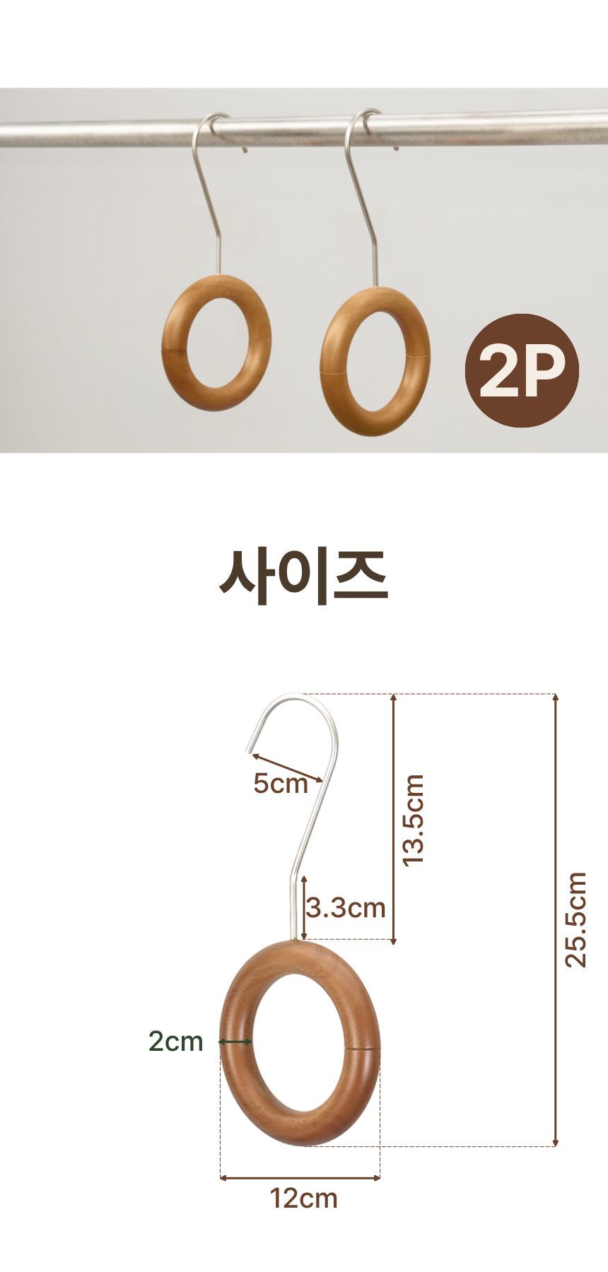 올지 헤리티지 원목 링 다기능 걸이 2P 스카프 벨트 넥타이 걸이