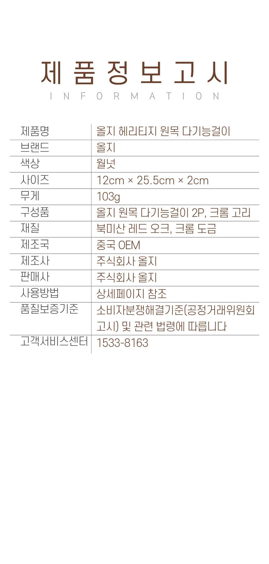 올지 헤리티지 원목 링 다기능 걸이 2P 넥타이 벨트 걸이 스카프