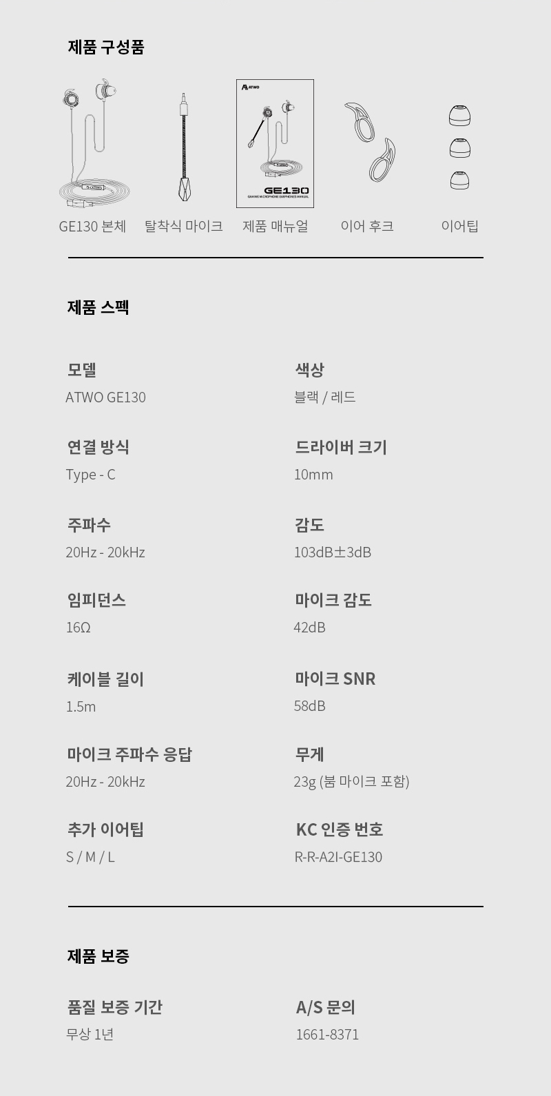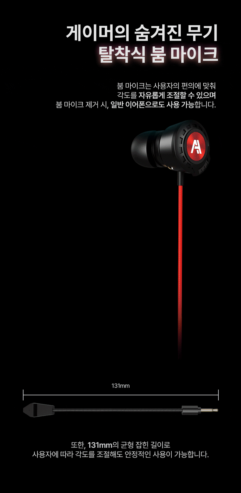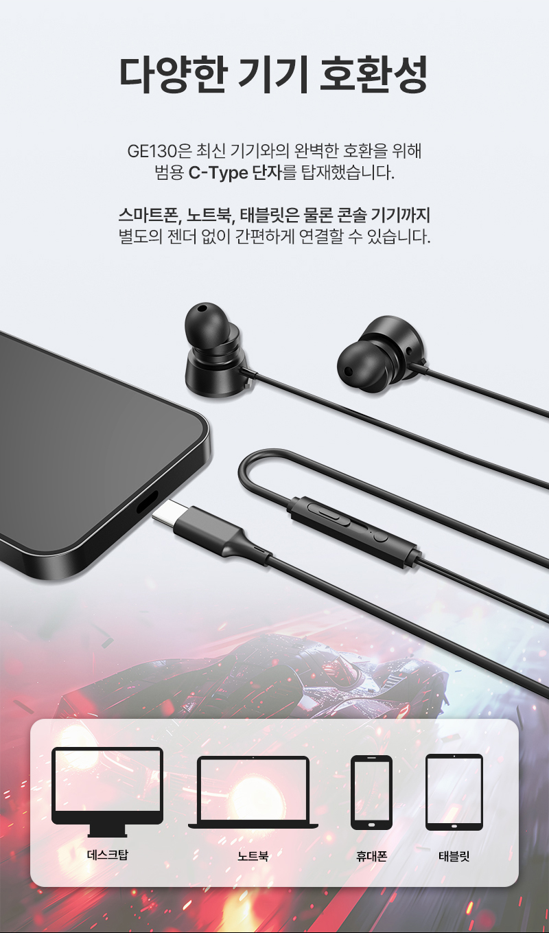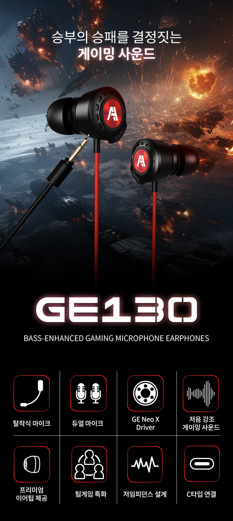 에이투 GE130 C타입 유선 게이밍 이어폰 탈부착 마이크 스마트폰 호환