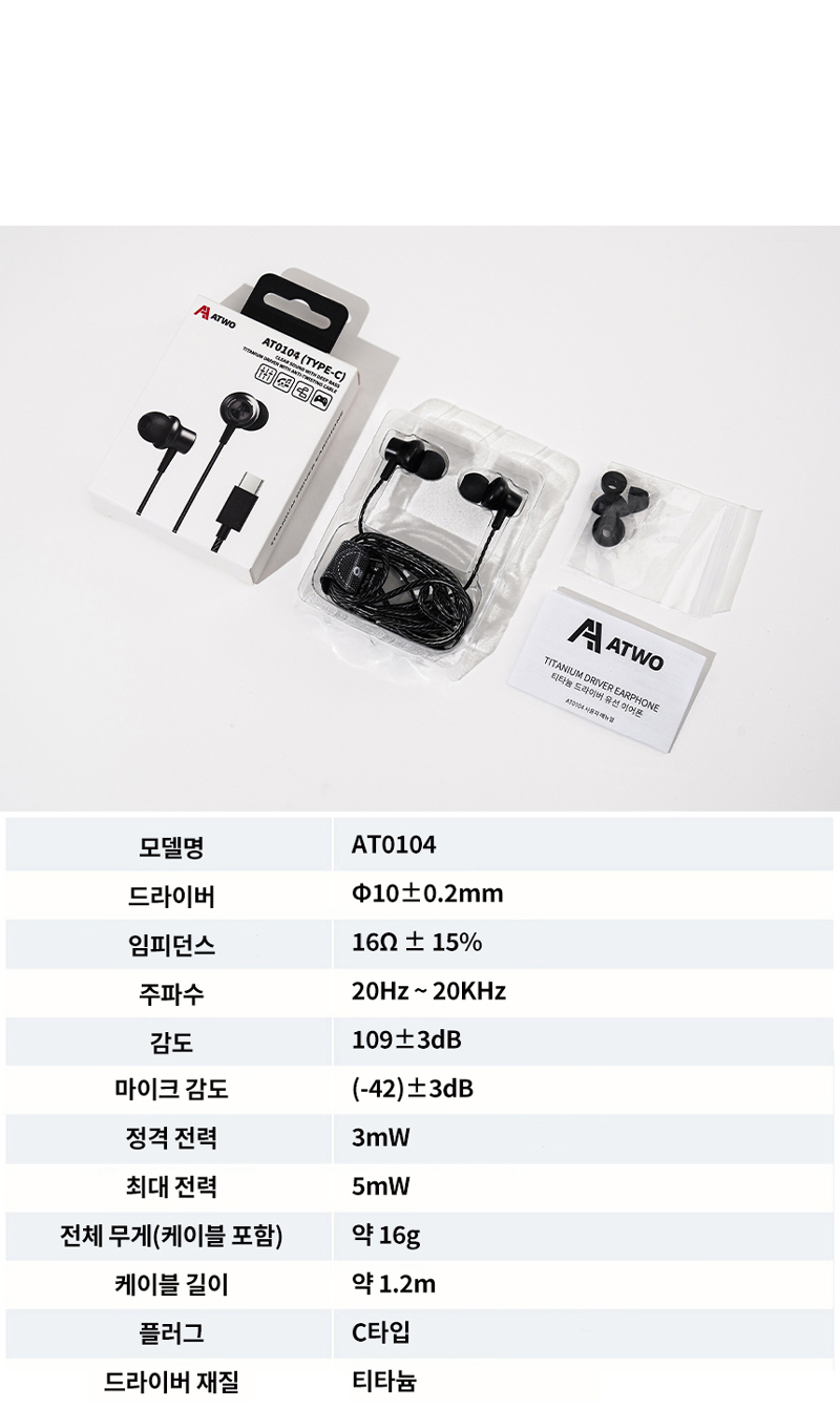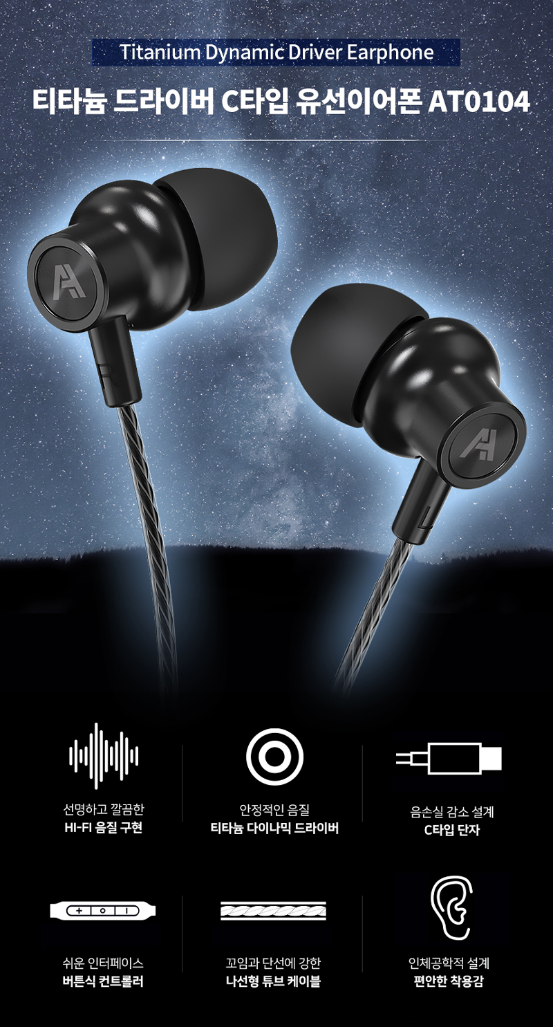 에이투 AT0104 C타입 티타늄 드라이버 HIFI 커널형 유선 이어폰