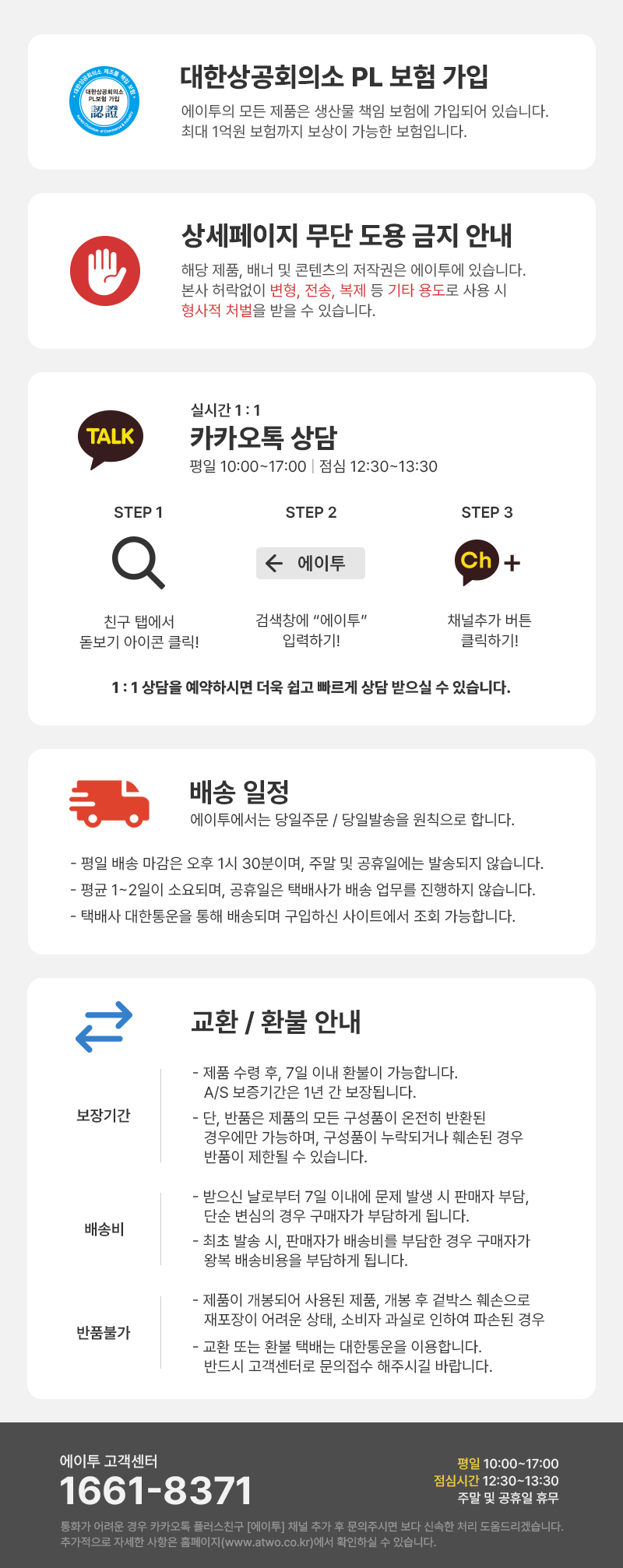• ② 고객님의 단순변심으로 인한 교환/반품인 경우, 제품 수령 후 7일 이내에 신청해야 합니다.
