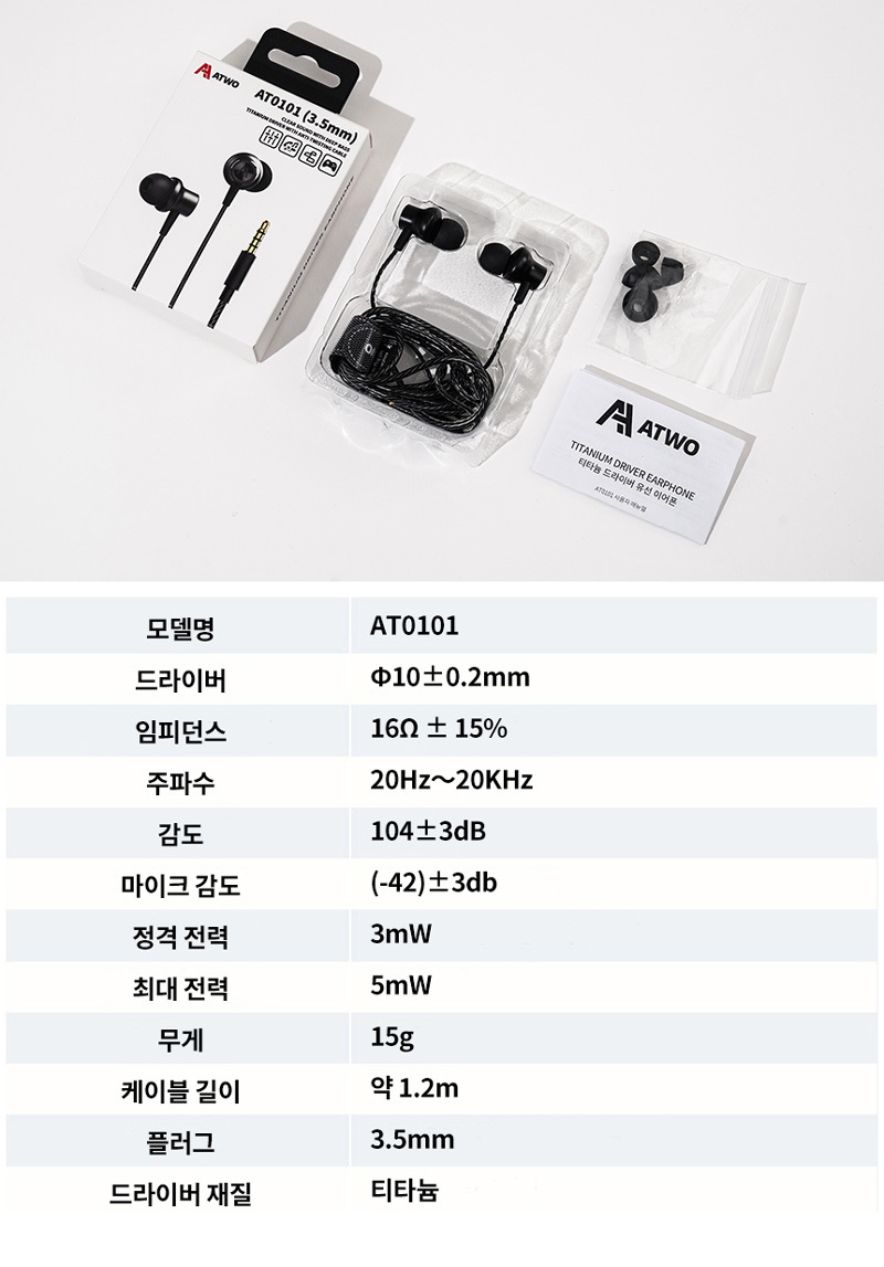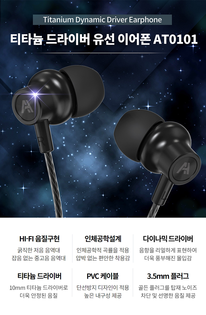 에이투 AT0101 티타늄 드라이버 커널형 인이어 유선 이어폰