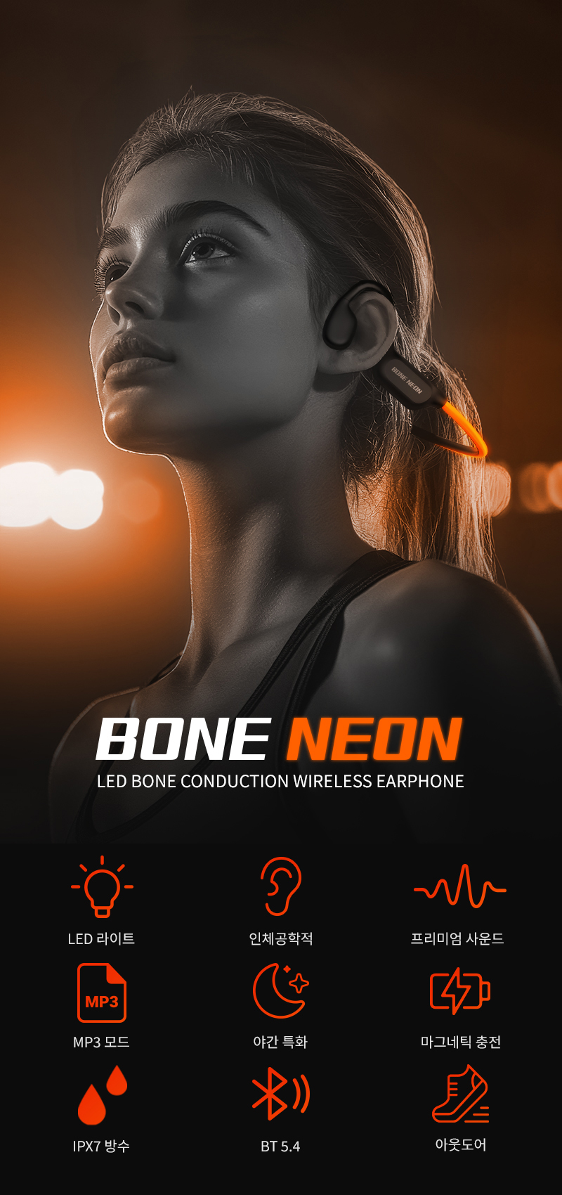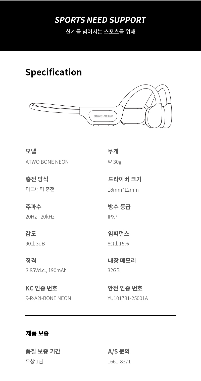 에이투 본네온 초경량 LED 골전도 블루투스 이어폰 MP3 탑재 완전방수 IPX7 BONE NEON